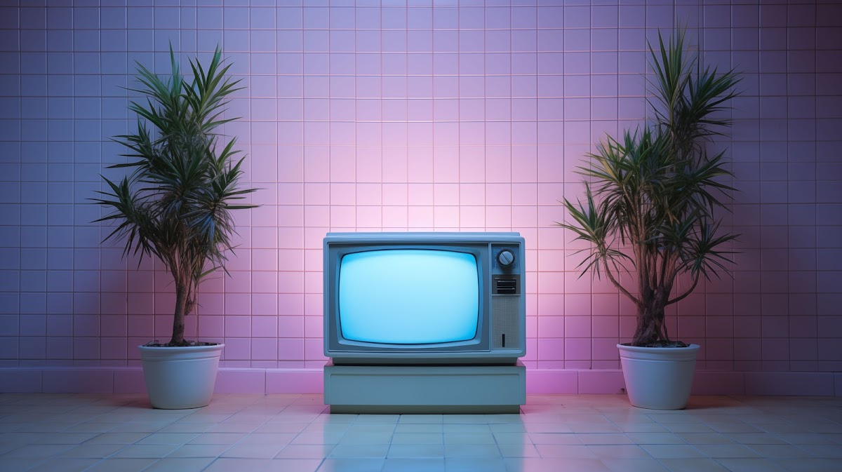 Retro Tv, Aesthetic, Plants, Tiles, 80S 5K Desktop Wallpaper