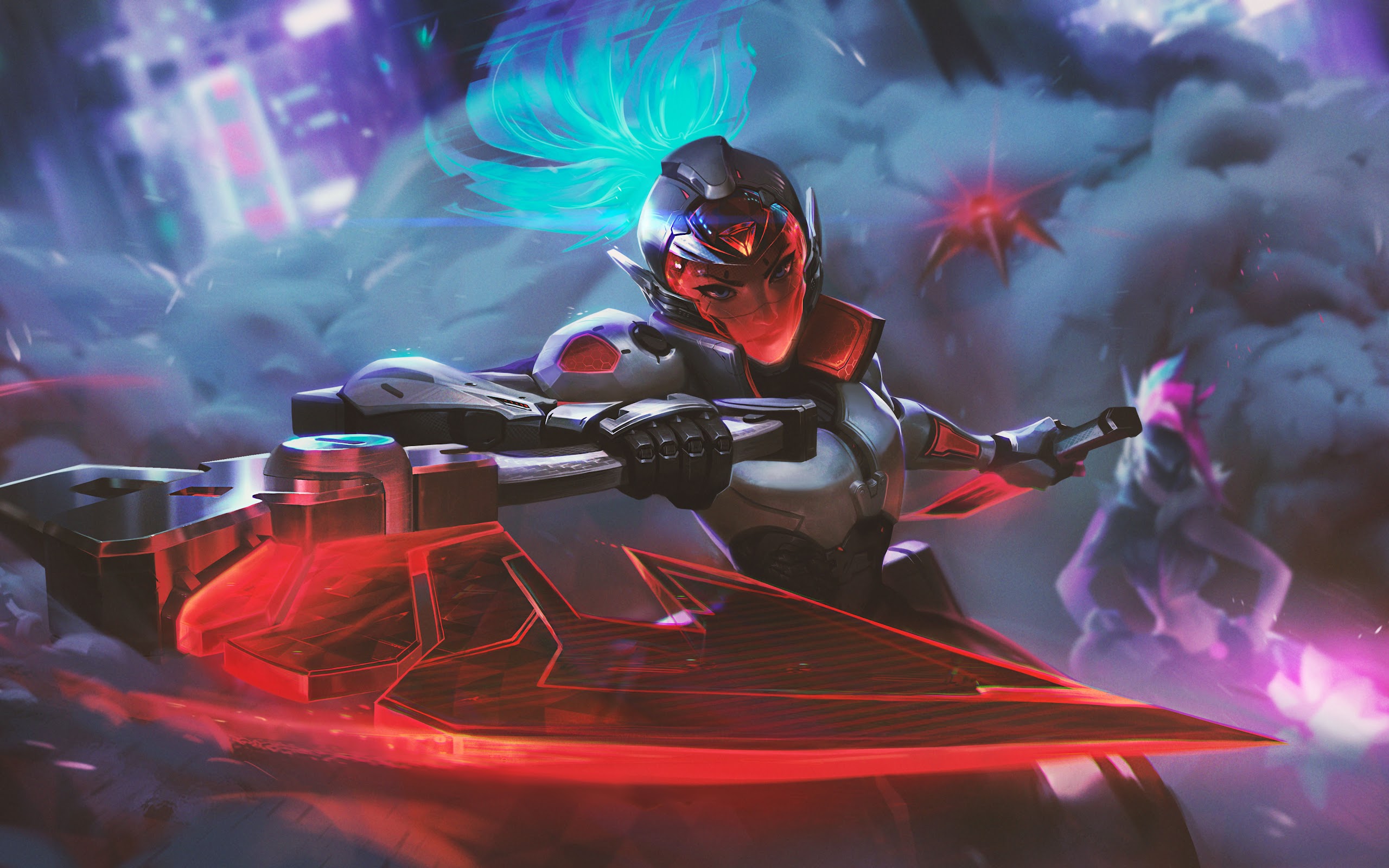 Akali (League Of Legends), League Of Legends, Video Game Characters, Fantasy Girl, Weapon 5K Desktop and Mobile Wallpaper Background with a maximum resolution of 6000x3540 px.