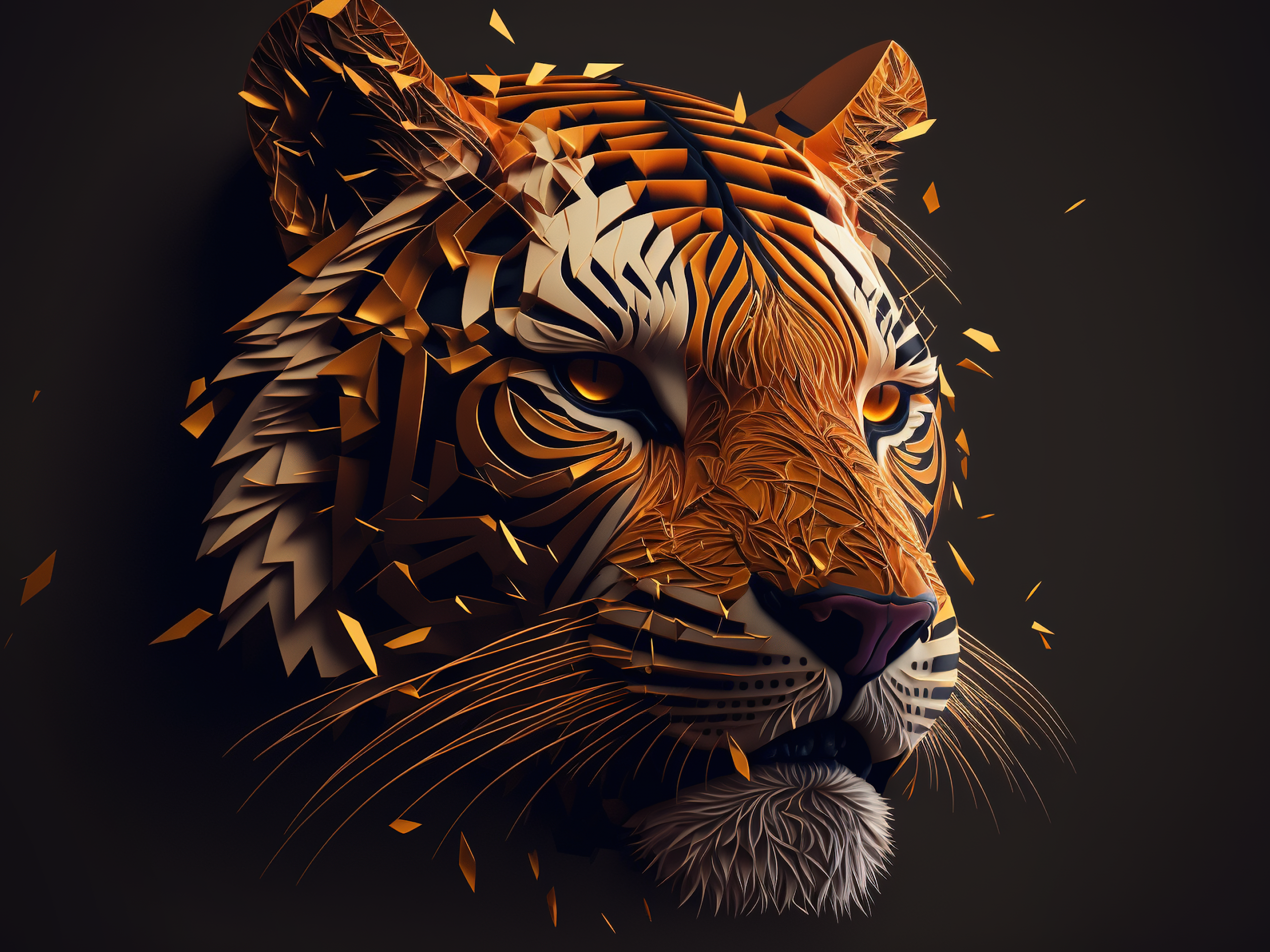 Tiger, Geometric, Orange, Illustration 4K Desktop and Mobile Wallpaper Background with a maximum resolution of 3840x2160 px.