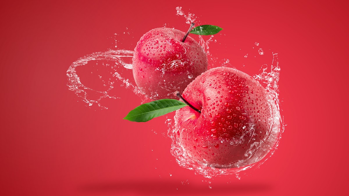Artwork, Digital Art, Apples, Water, Water Drops 4K Desktop and Mobile Wallpaper Background with a maximum resolution of 3840x2160 px.