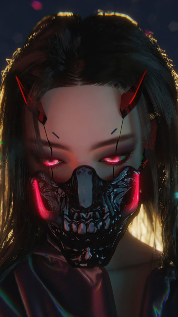 Cyberpunk, Oni, Mask, Futuristic 4K Desktop and Mobile Wallpaper Background with a maximum resolution of 3840x2160 px.