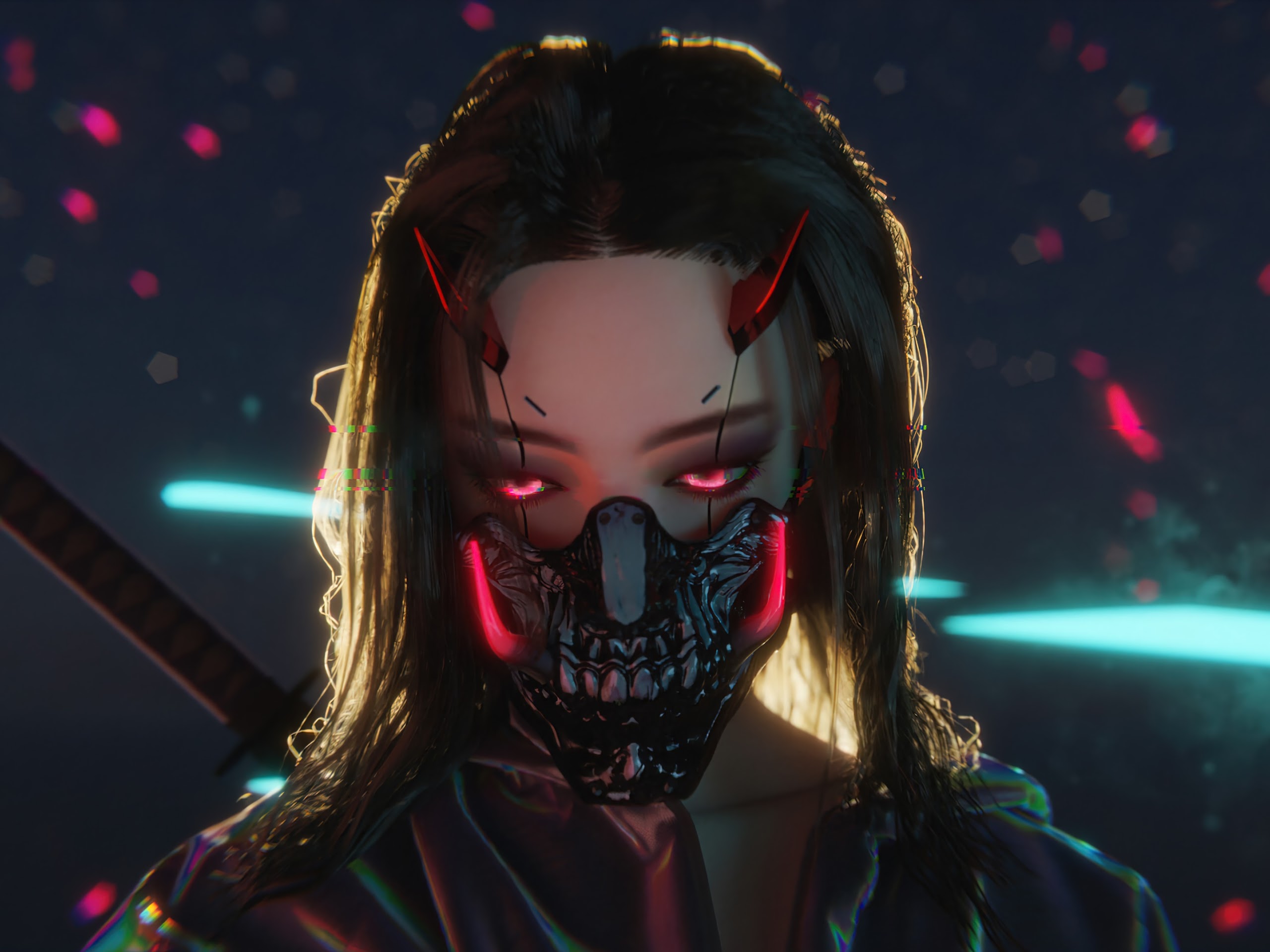 Cyberpunk, Oni, Mask, Futuristic 4K Desktop and Mobile Wallpaper Background with a maximum resolution of 3840x2160 px.