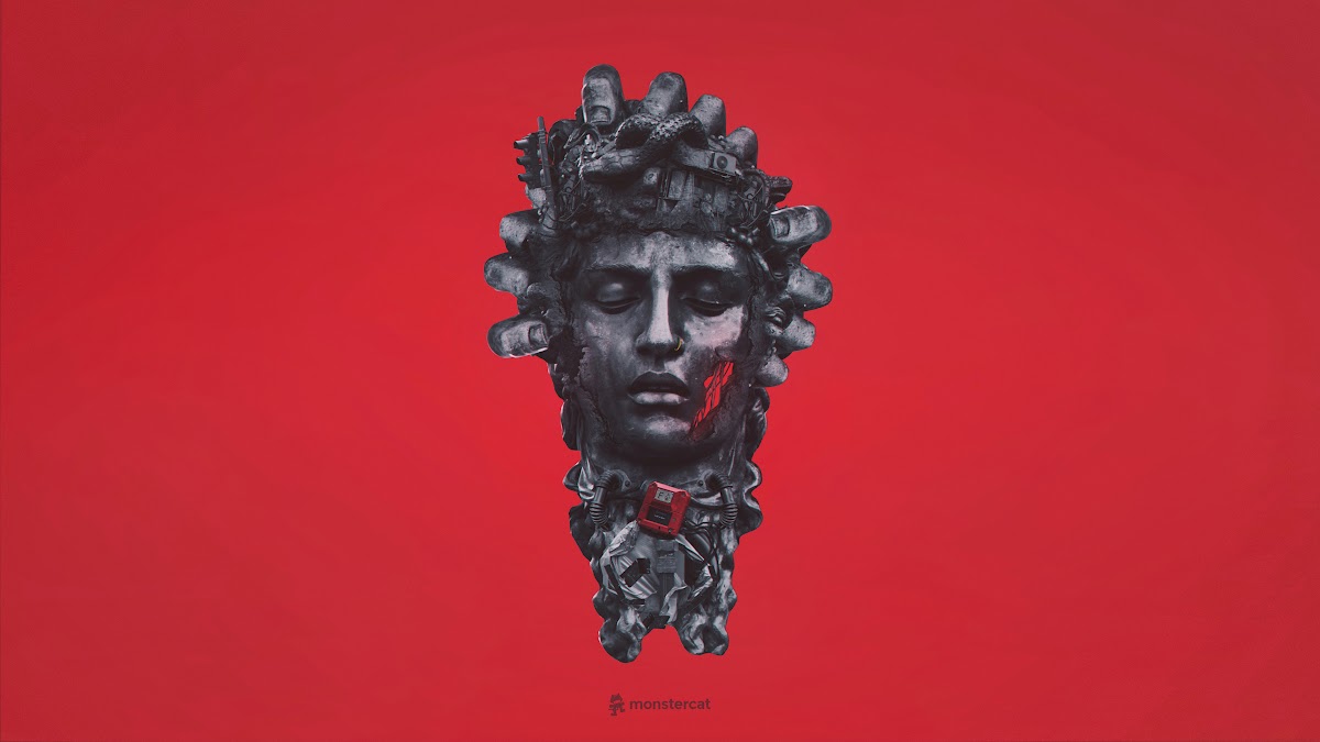 Monstercat, Aero Chord, Minimalism, Red, Statue 4K Desktop Wallpaper
