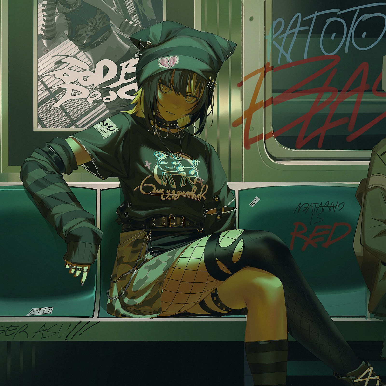 Anime, Anime Girls, Subway, Rings, Graffiti 4K Desktop and Mobile Wallpaper Background with a maximum resolution of 5601x2787 px.