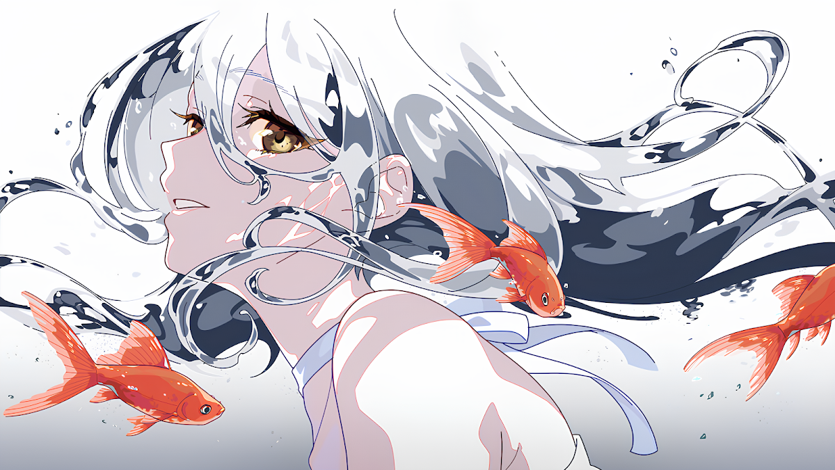 Anime Girls, Goldfish, Water, Illustration, Digital Art 4K Desktop and Mobile Wallpaper Background with a maximum resolution of 4976x2800 px.