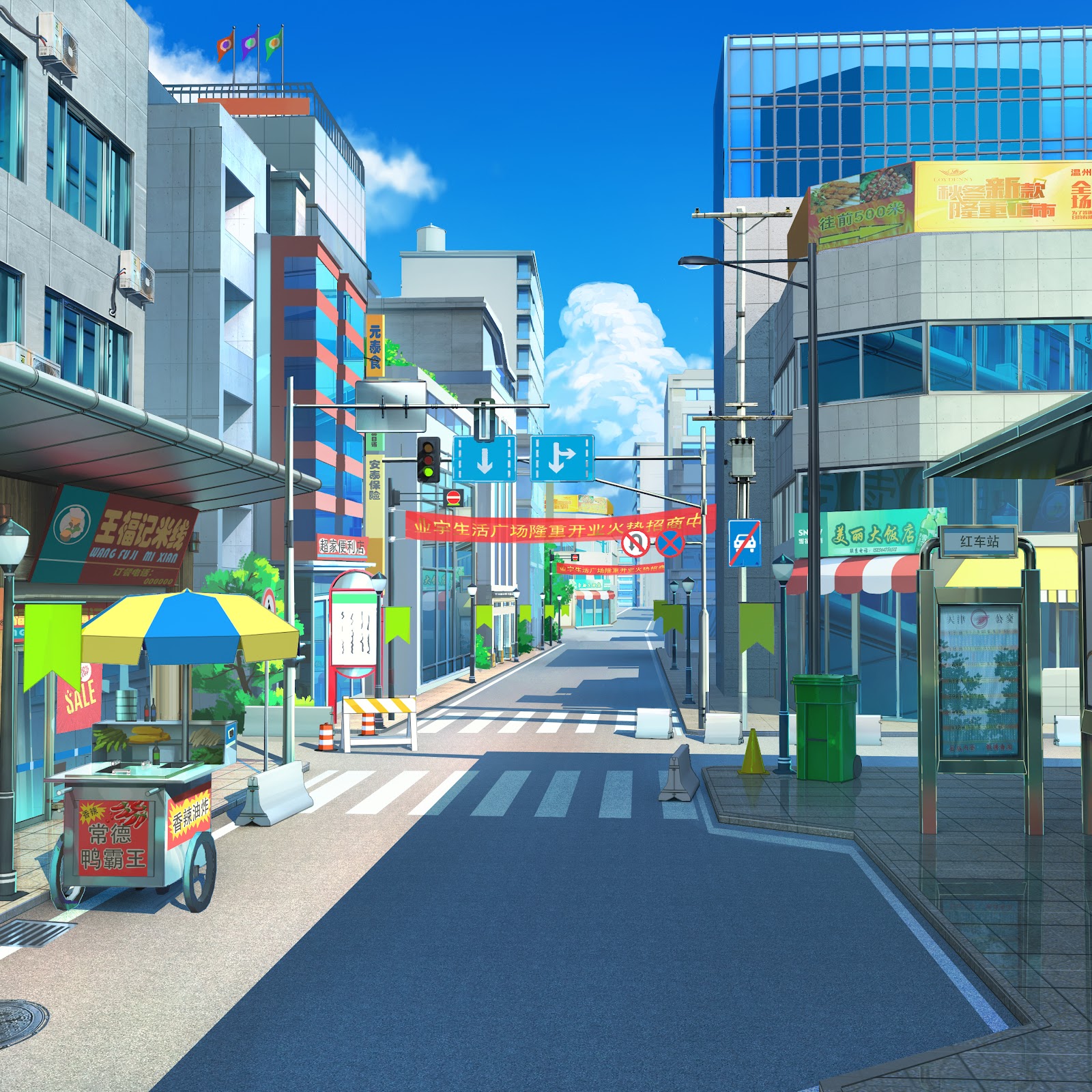 Artwork, Digital Art, Road, Building, Stores 4K Desktop and Mobile Wallpaper Background with a maximum resolution of 5000x2813 px.