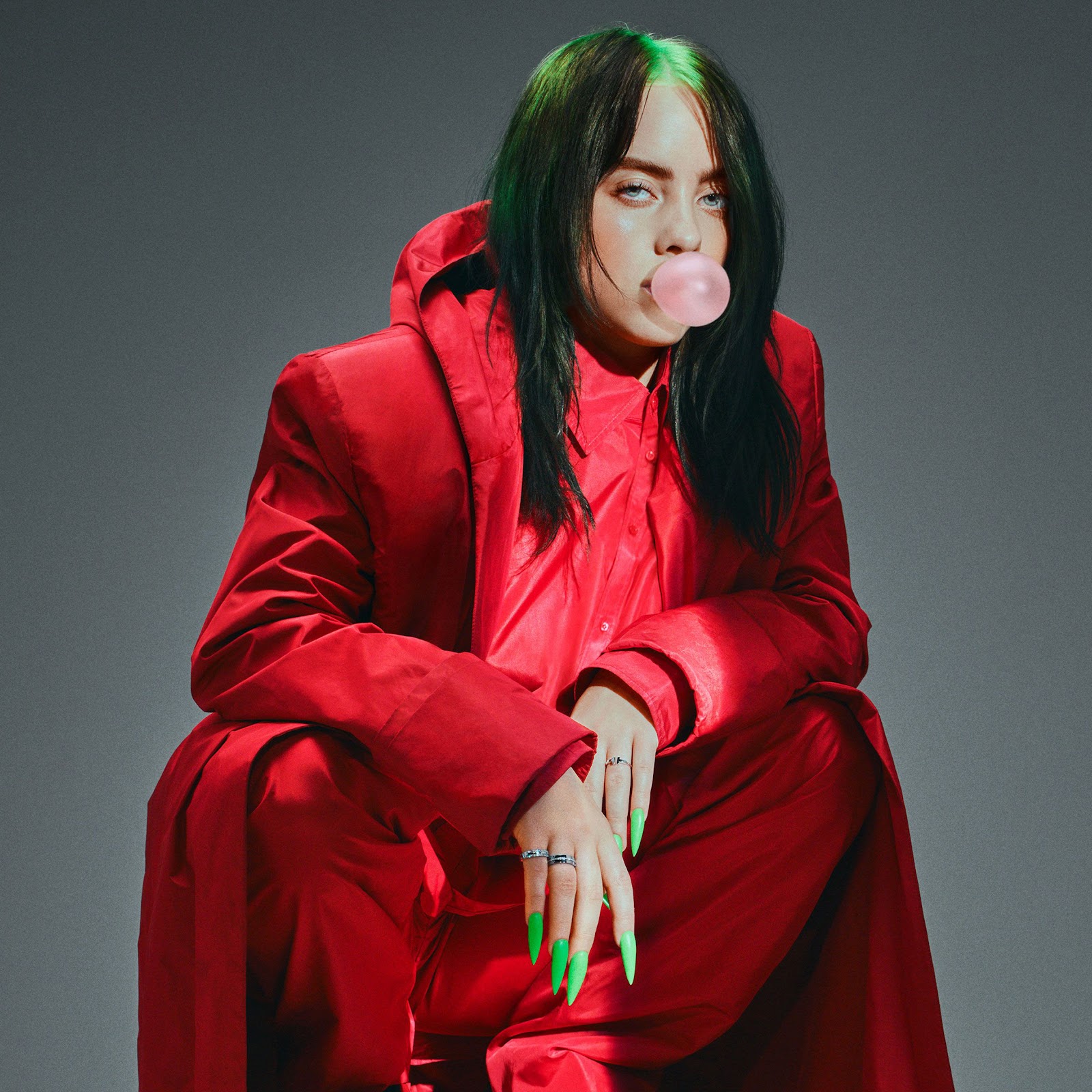 Billie Eilish, Green Nails, Green Hair, Bubble Gum, Suits 4K Desktop and Mobile Wallpaper Background with a maximum resolution of 4350x2447 px.