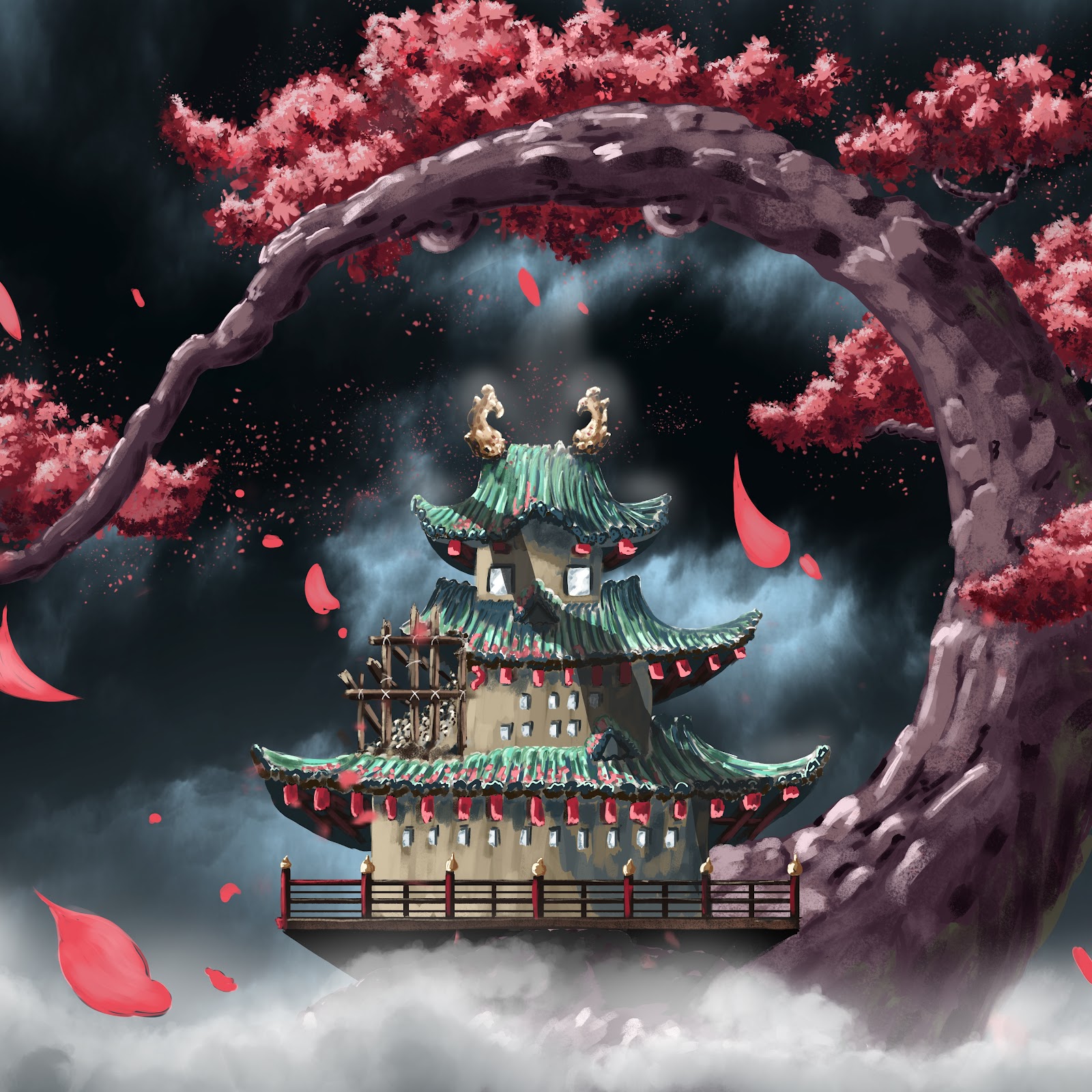 Digital Art, Artwork, Drawing, Temple, Trees 8K Desktop and Mobile Wallpaper Background with a maximum resolution of 8000x4501 px.