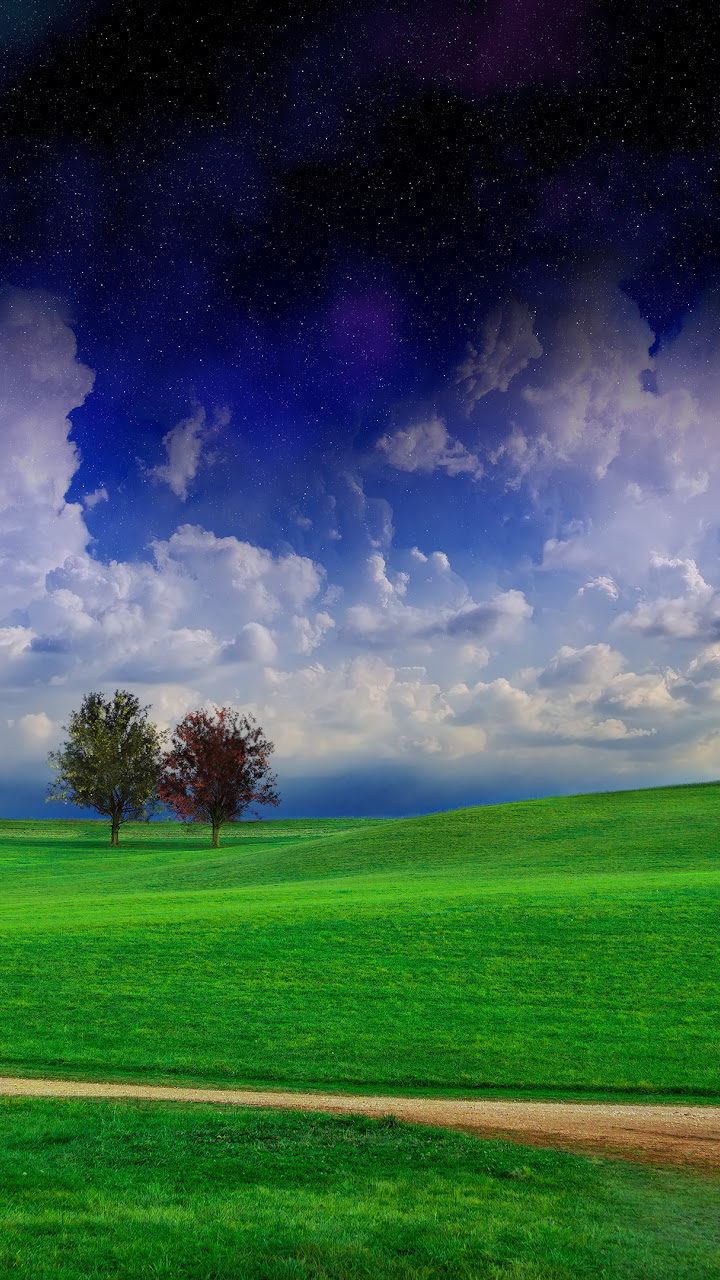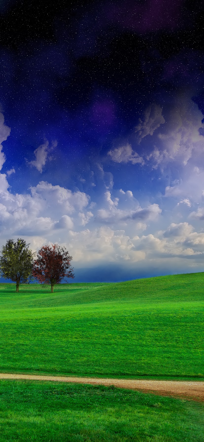 Digital Art, Trees, Grass, Green, Clouds 4K Phone Wallpaper