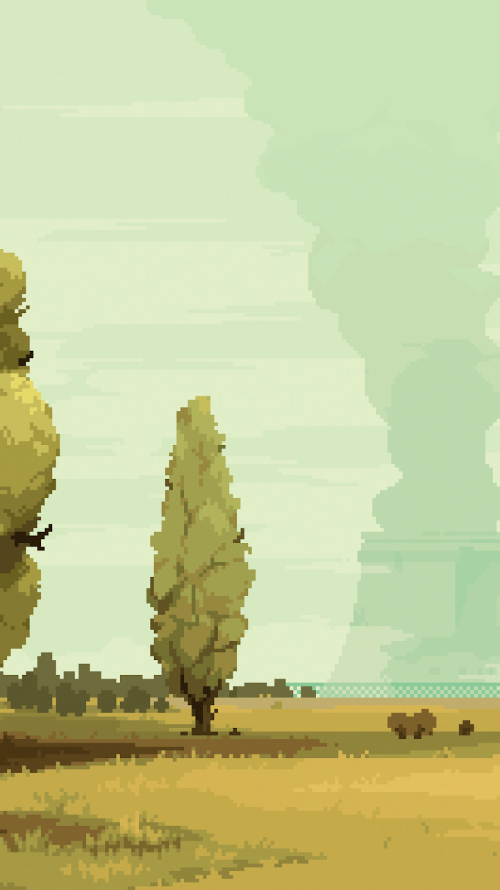 Entairon Kizon, Power Plant, Trees, Clouds, Pixel Art 4K Phone Wallpaper