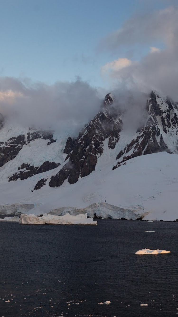 A Stunning Glacier, Sea, Landscape, Nature, Clouds 5K Desktop and Mobile Wallpaper Background (5238x3282)