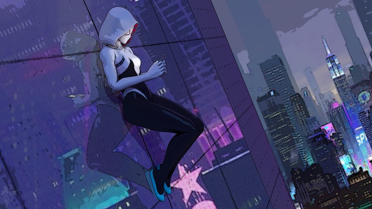 Gwen Stacy, Spider Gwen, Spider-Woman, Ghost Spider 4K Desktop and Mobile Wallpaper Background with a maximum resolution of 3840x2160 px.