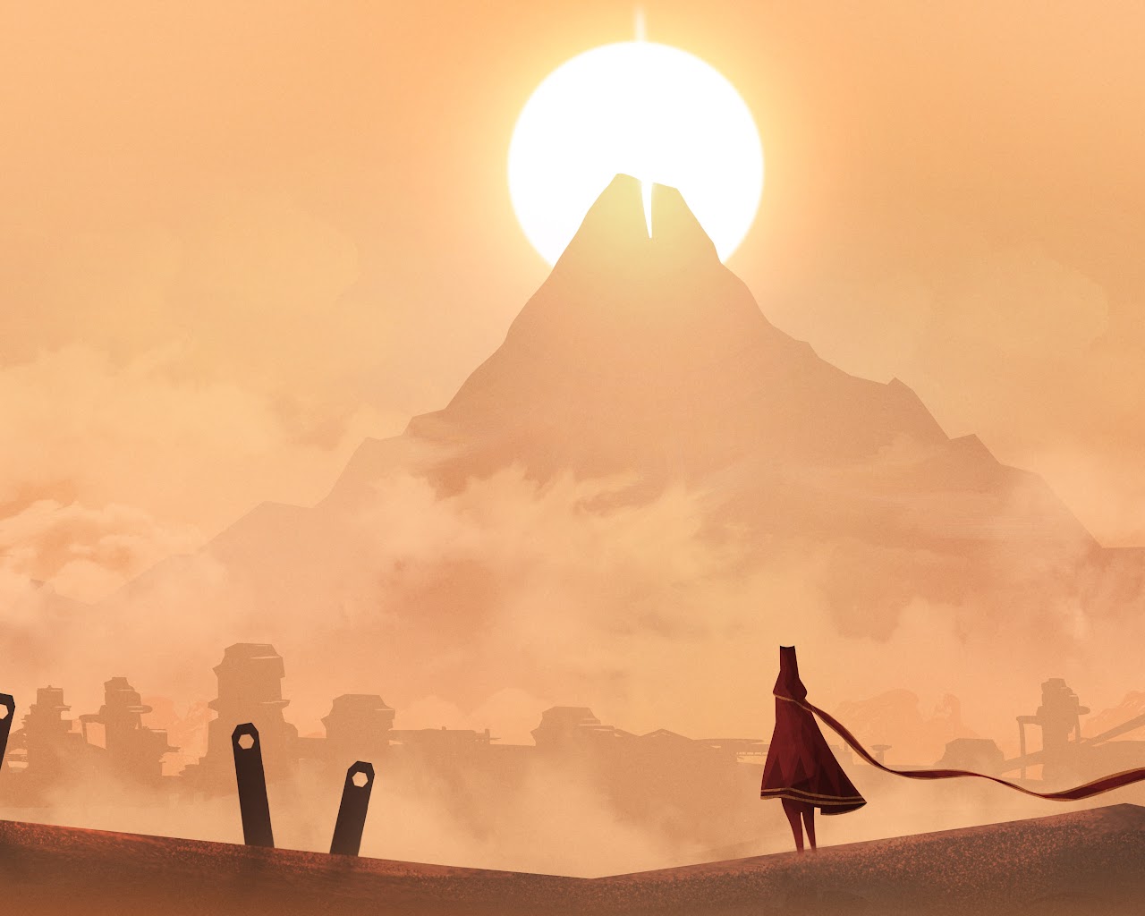 Journey (Game), Vector, Landscape, Mountains, Sun 5K Desktop Wallpaper