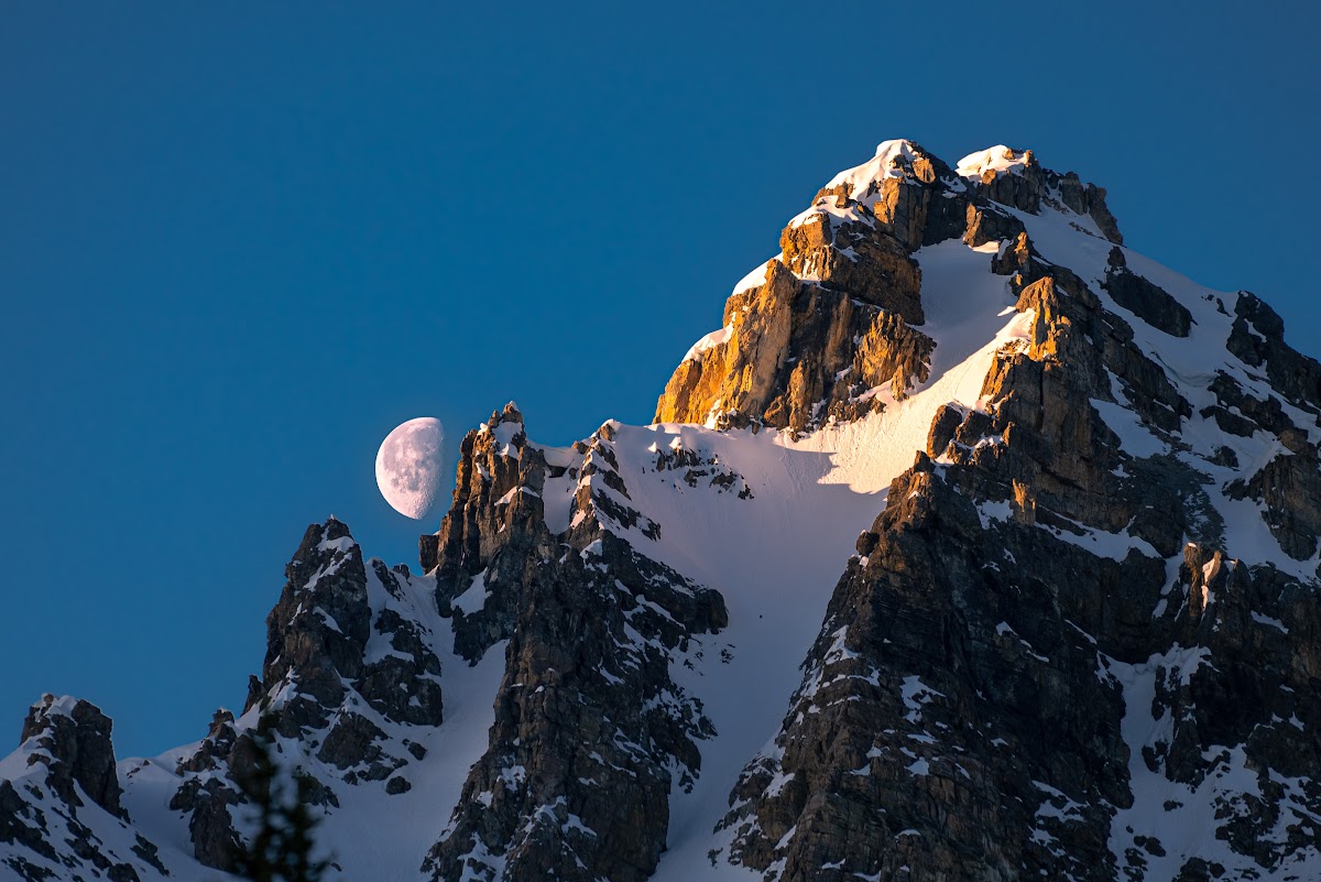 A Stunning Landscape, Moon, Mountains, Snow, Nature 4K Desktop and Mobile Wallpaper Background (4744x3165)