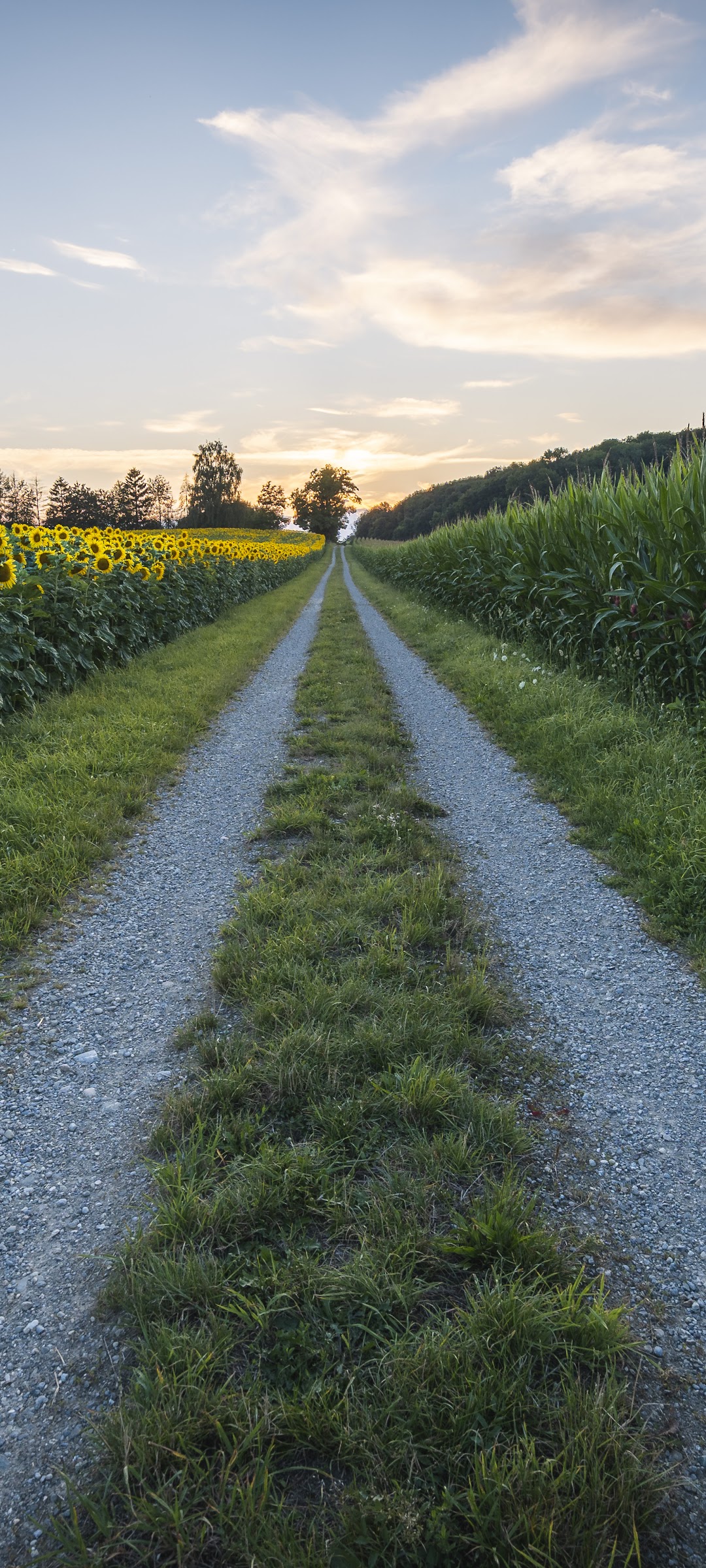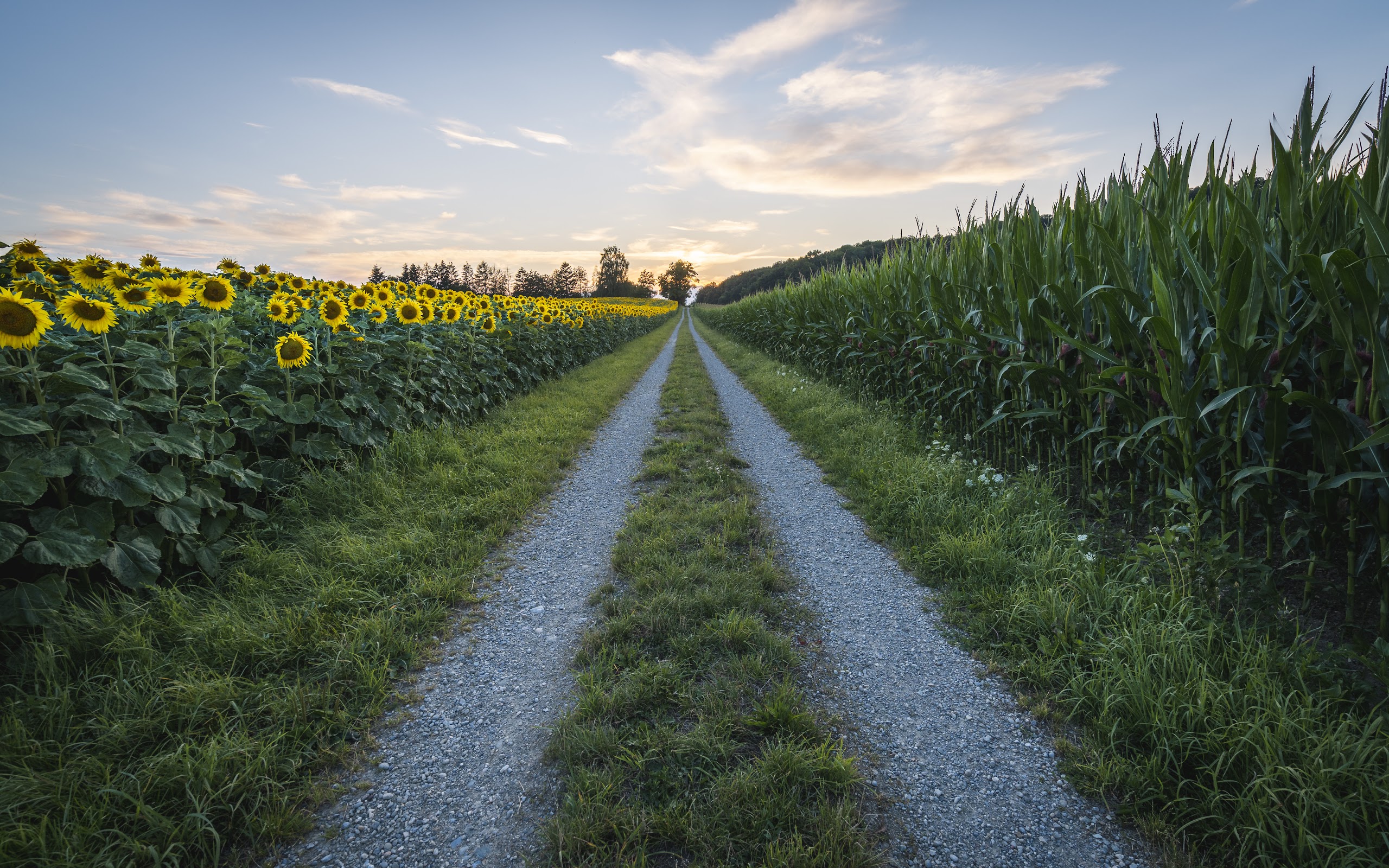 Landscape, Nature, Grass, Sunflowers, Clouds 5K Desktop and Mobile Wallpaper Background with a maximum resolution of 5835x3890 px.