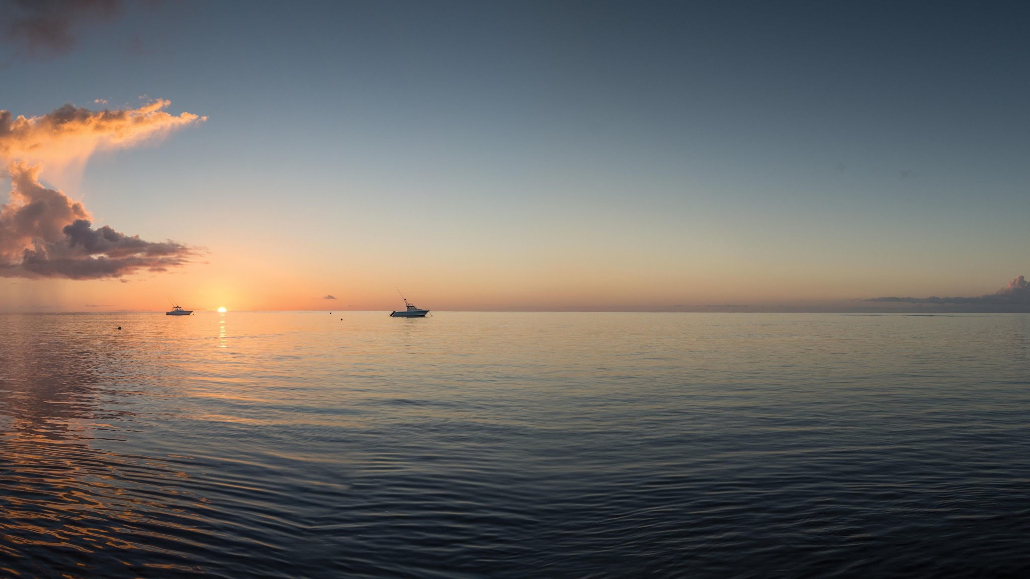 Landscape, Sea, Horizon, Sunset, Clouds 4K Super Ultrawide Desktop and Mobile Wallpaper Background with a maximum resolution of 7680x2160 px.