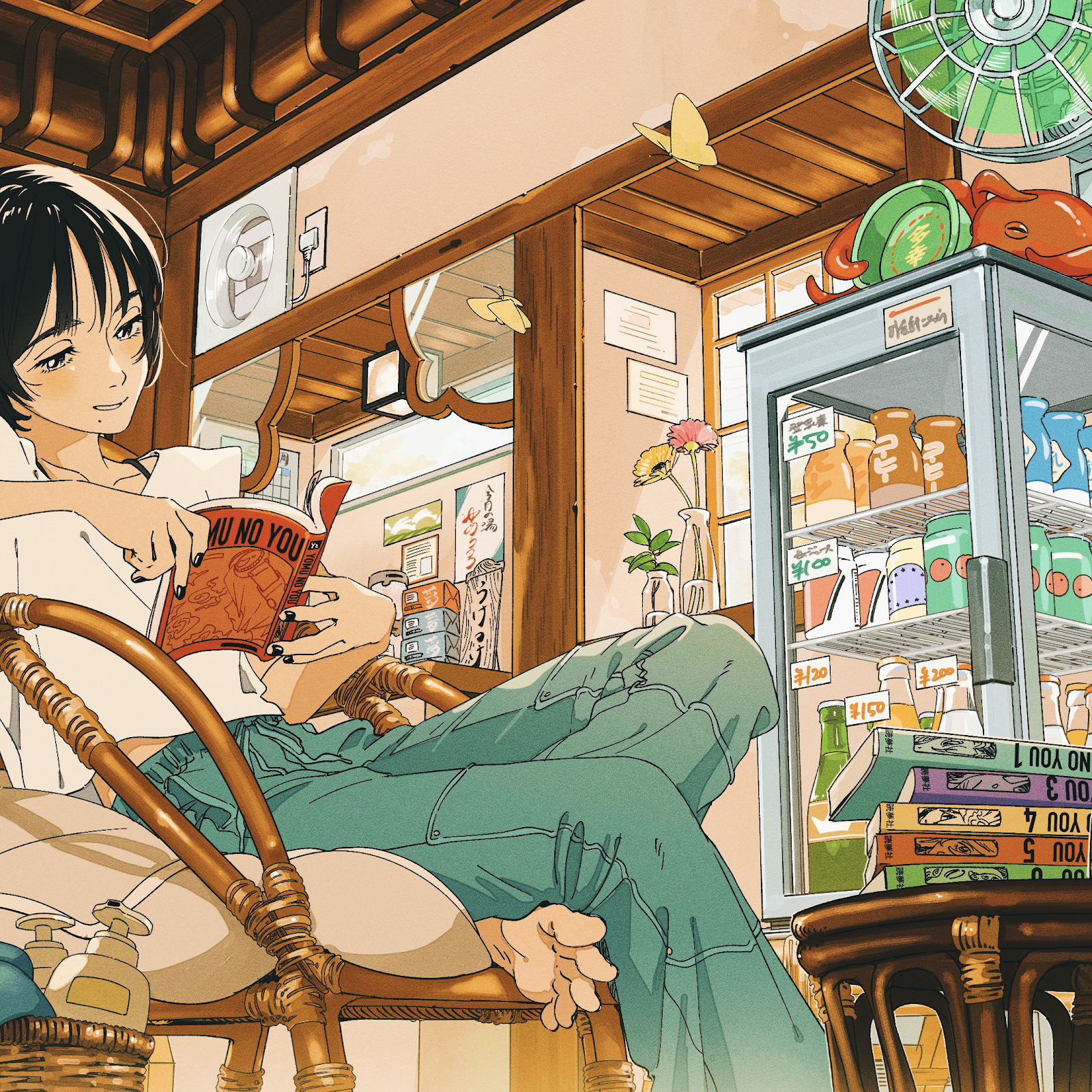A Stunning Nobori, Painted Nails, Library, Short Hair, Reading 4K Desktop and Mobile Wallpaper Background (3840x2160)