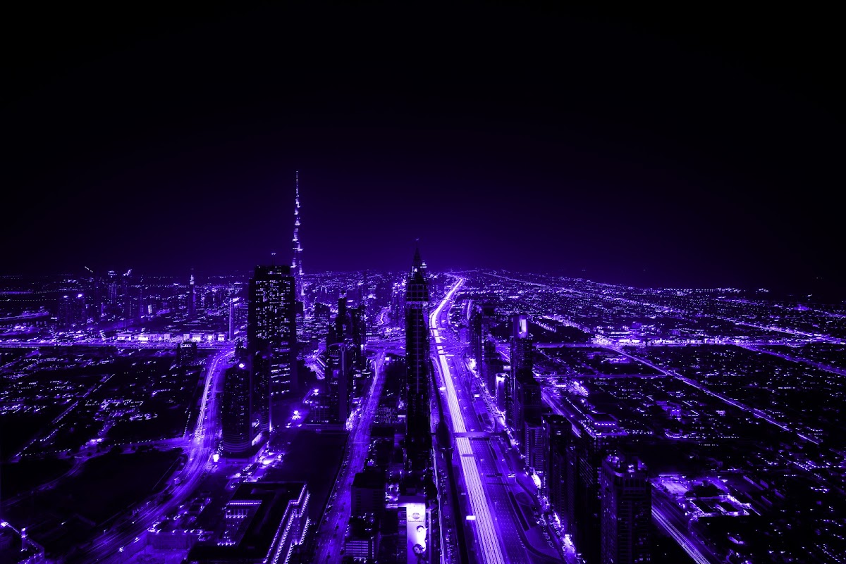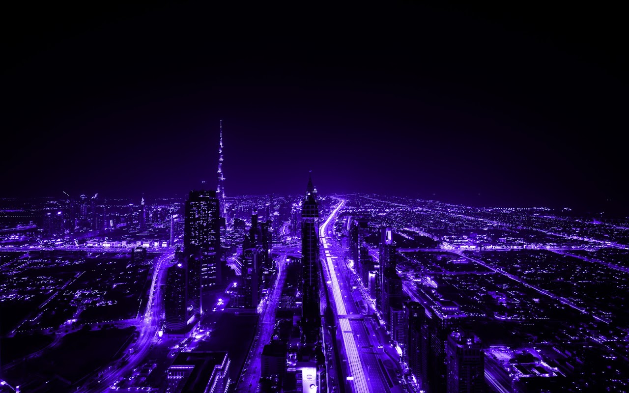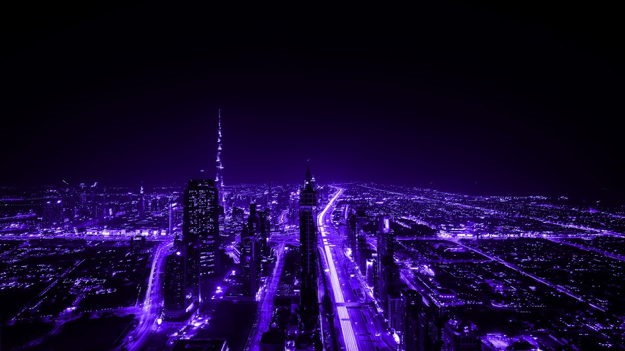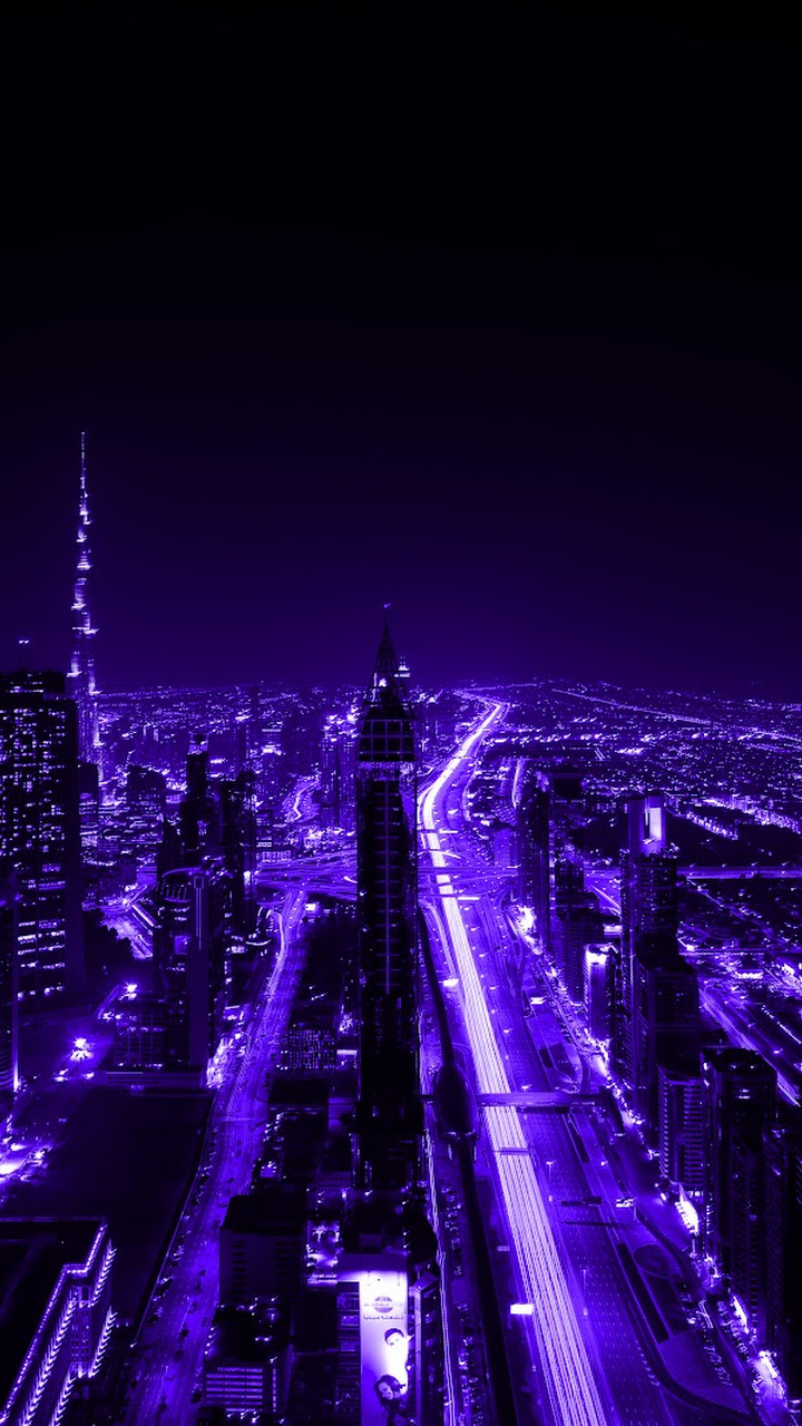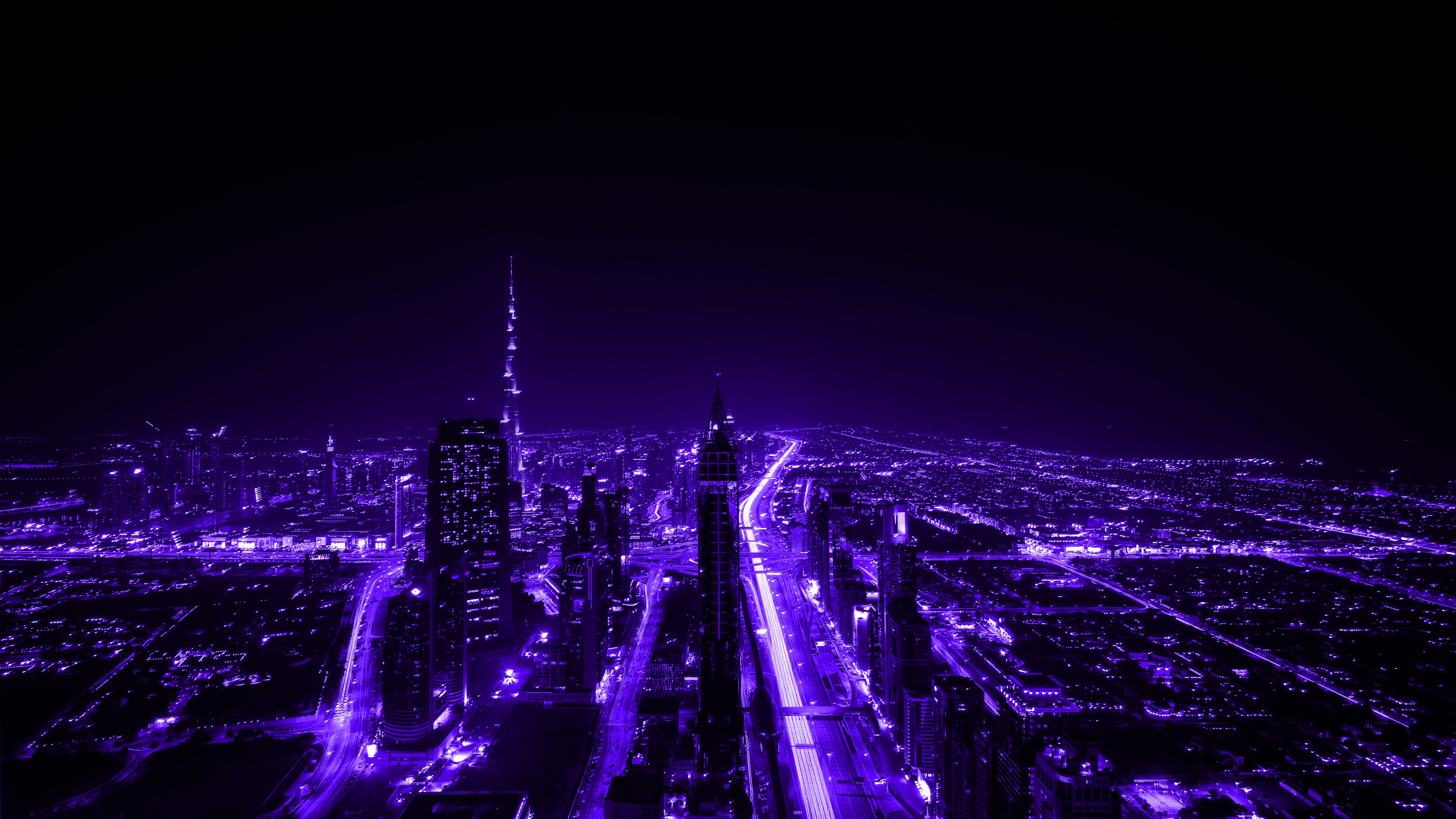 Purple, City, Night, Lights, Skyscraper 5K Desktop and Mobile Wallpaper Background with a maximum resolution of 7360x4912 px.