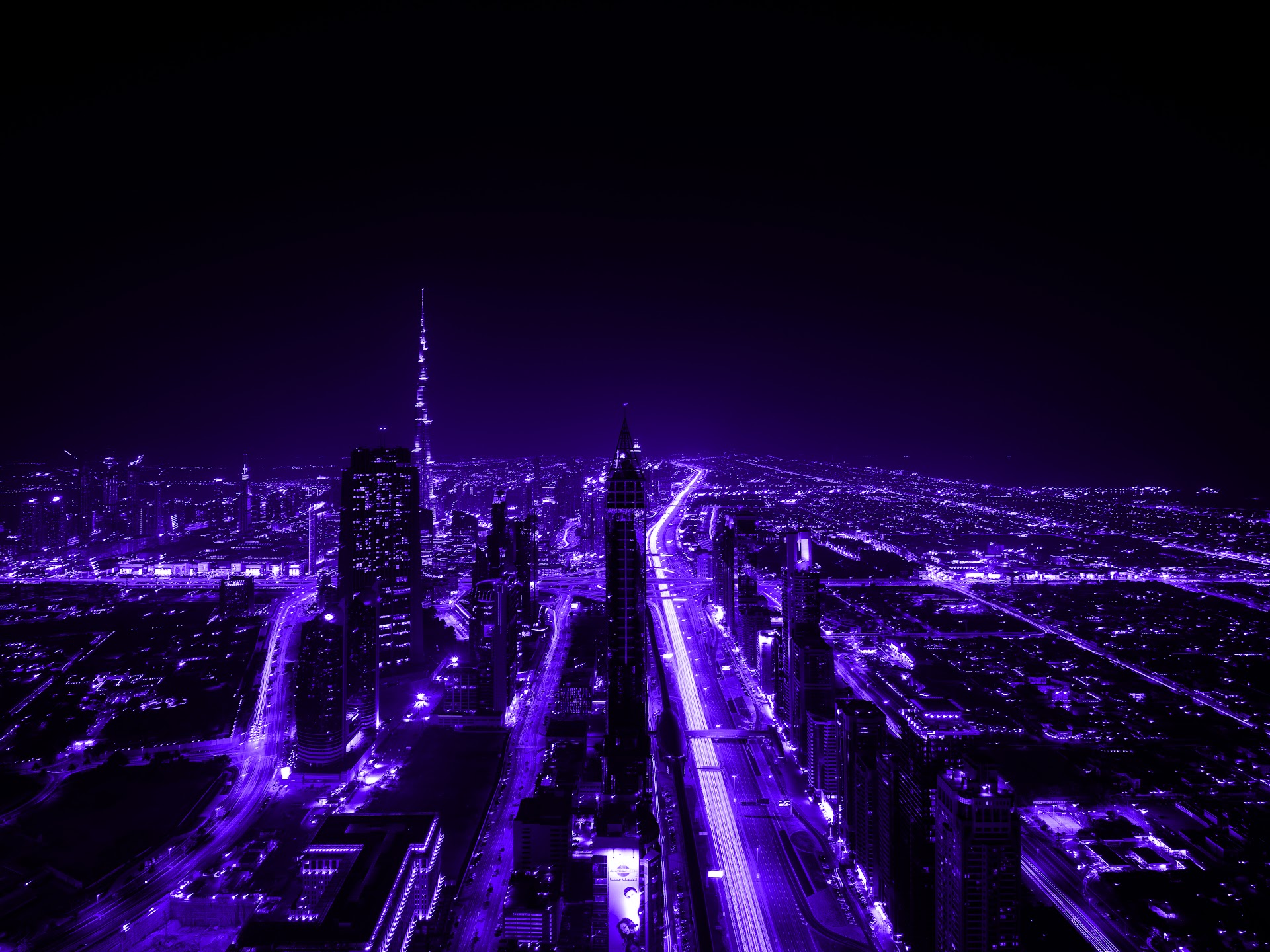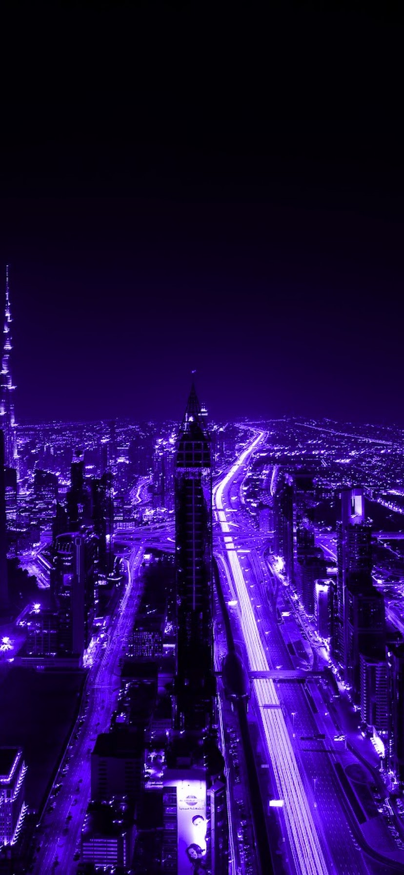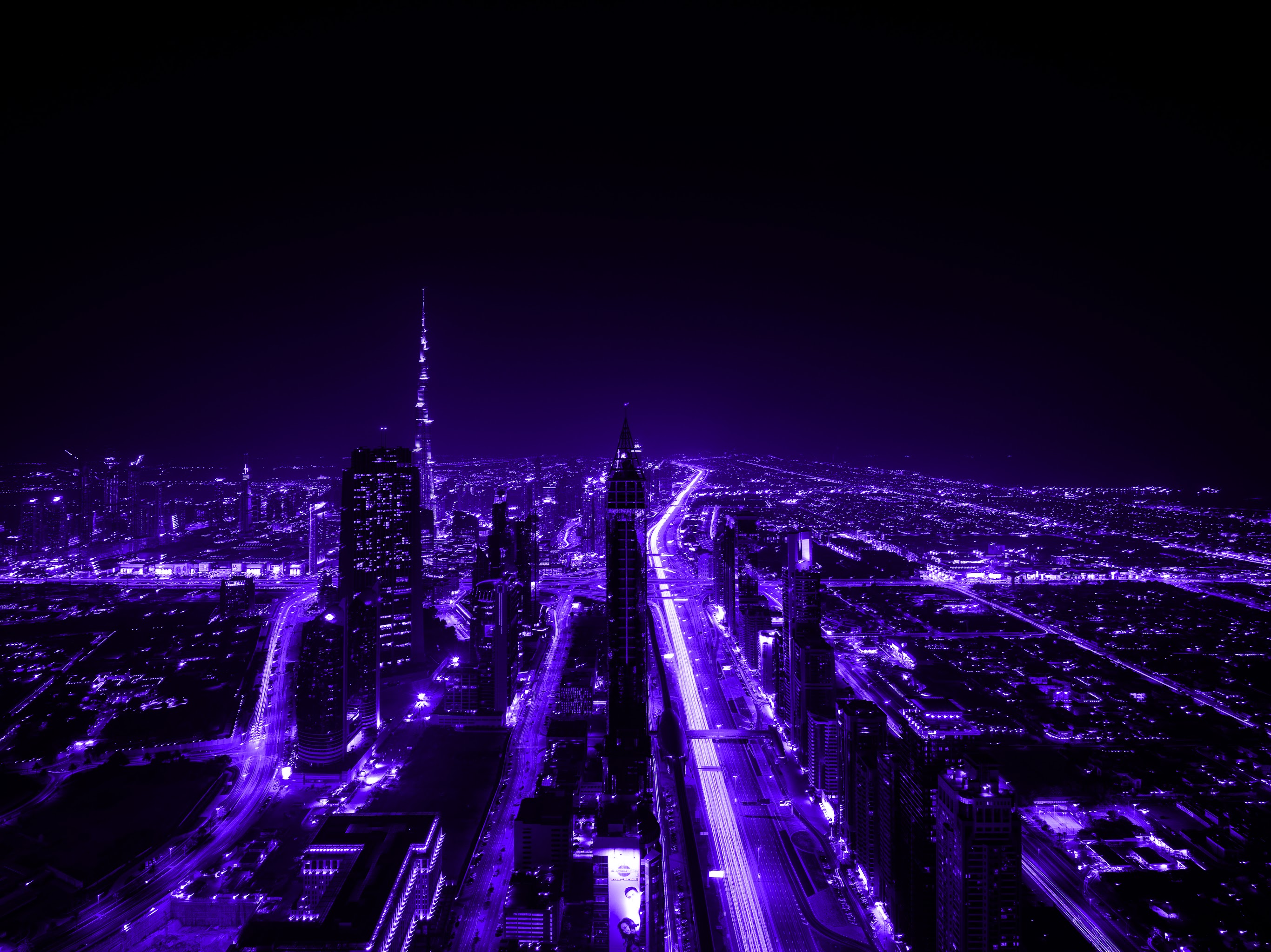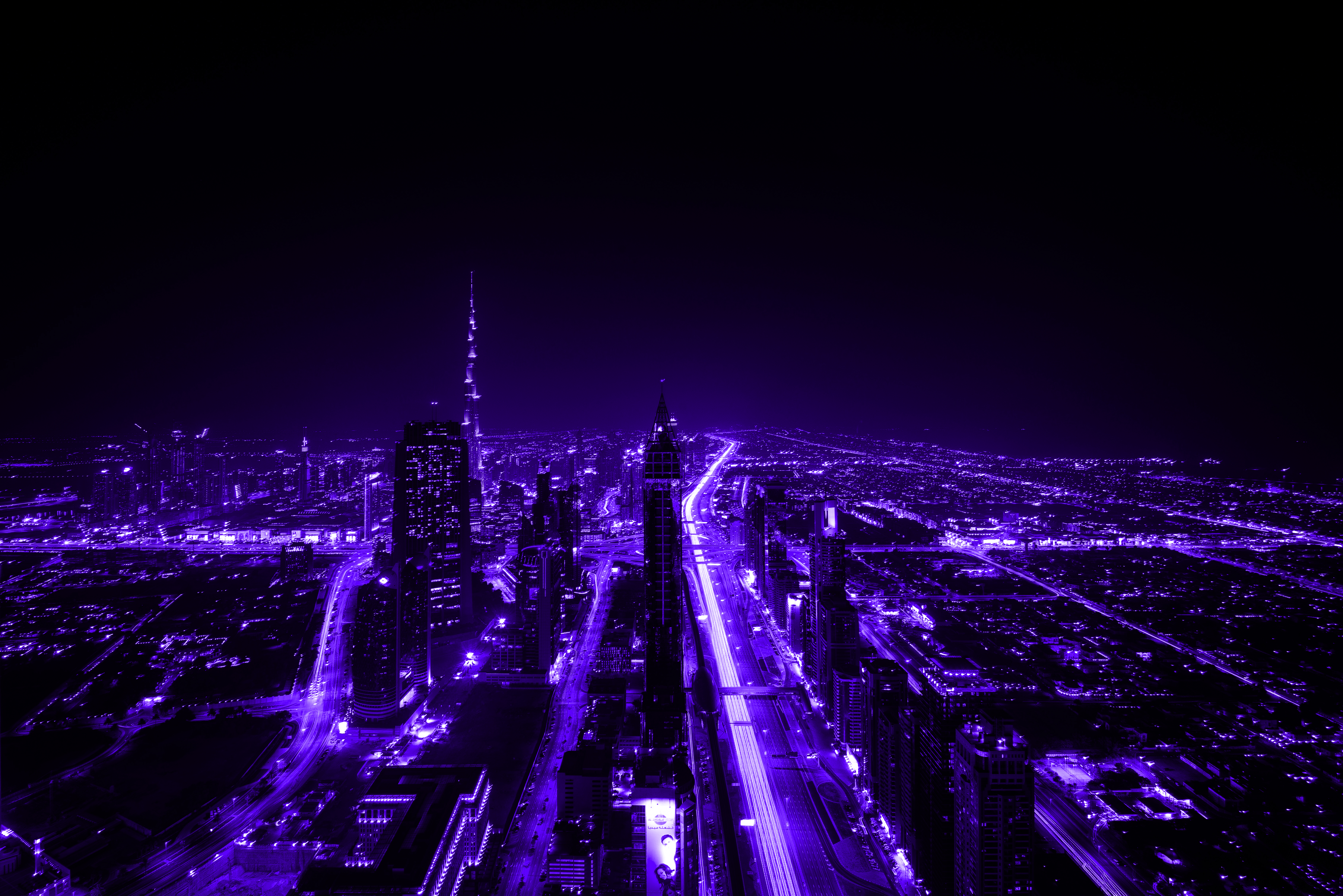 Purple, City, Night, Lights, Skyscraper 5K Desktop and Mobile Wallpaper Background with a maximum resolution of 7360x4912 px.