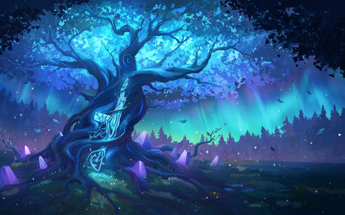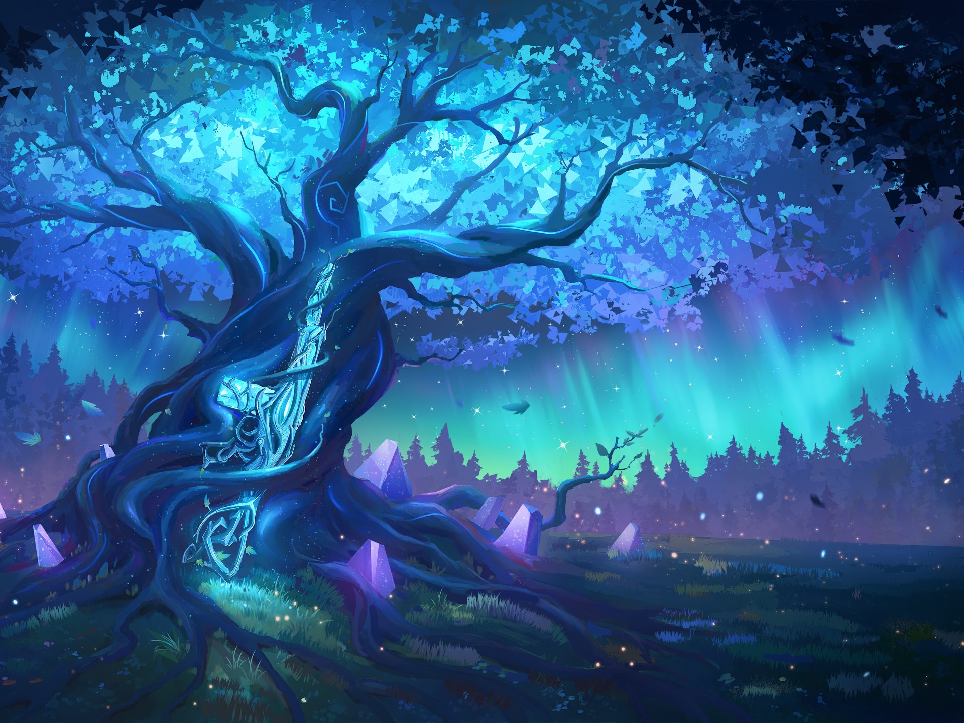 Fantasy, Magic, Tree, Forest 4K Desktop and Mobile Wallpaper Background with a maximum resolution of 4000x2249 px.
