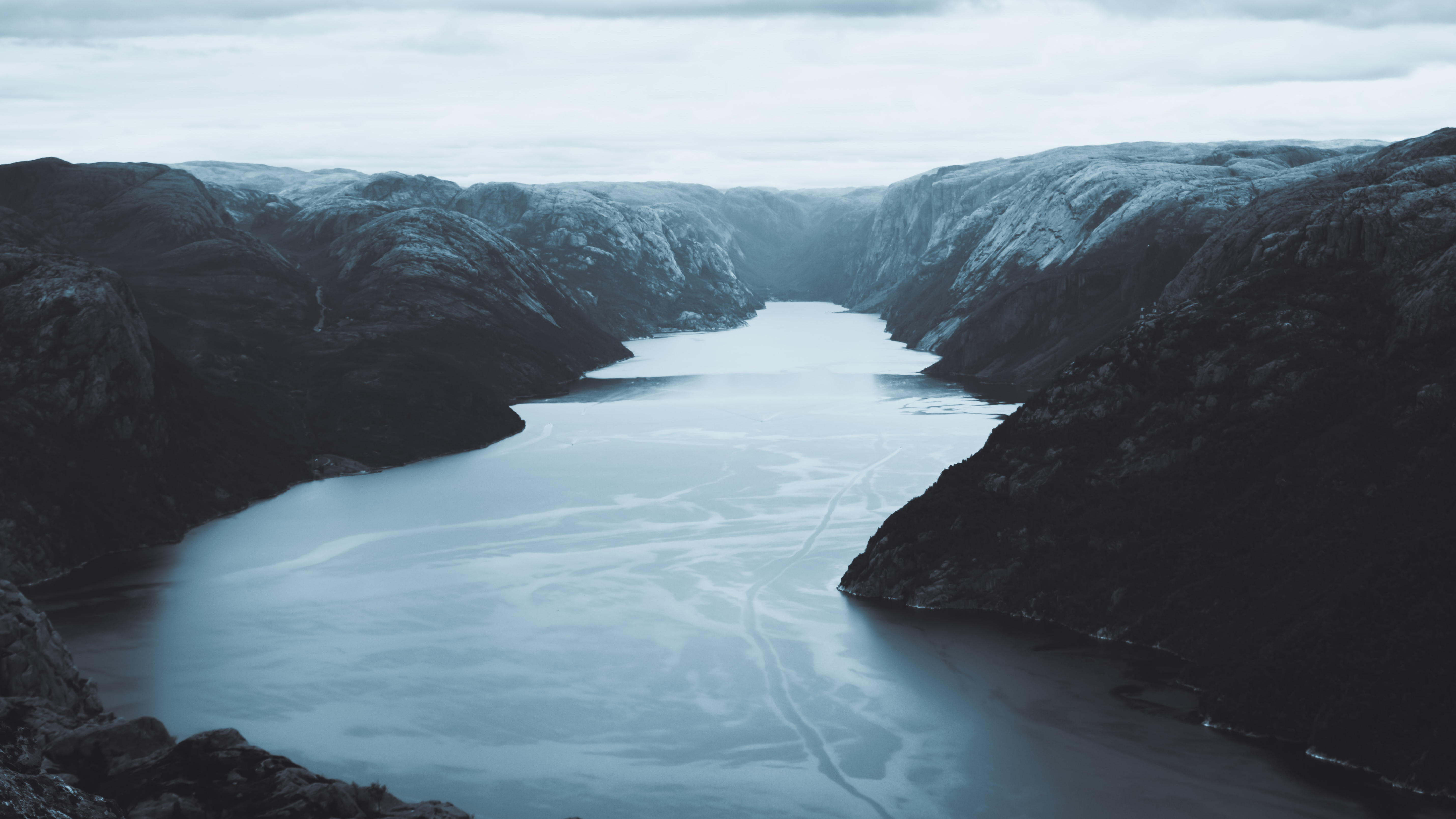 Fjord, Norway, Travel, Nature 5K Desktop and Mobile Wallpaper Background with a maximum resolution of 5723x3219 px.