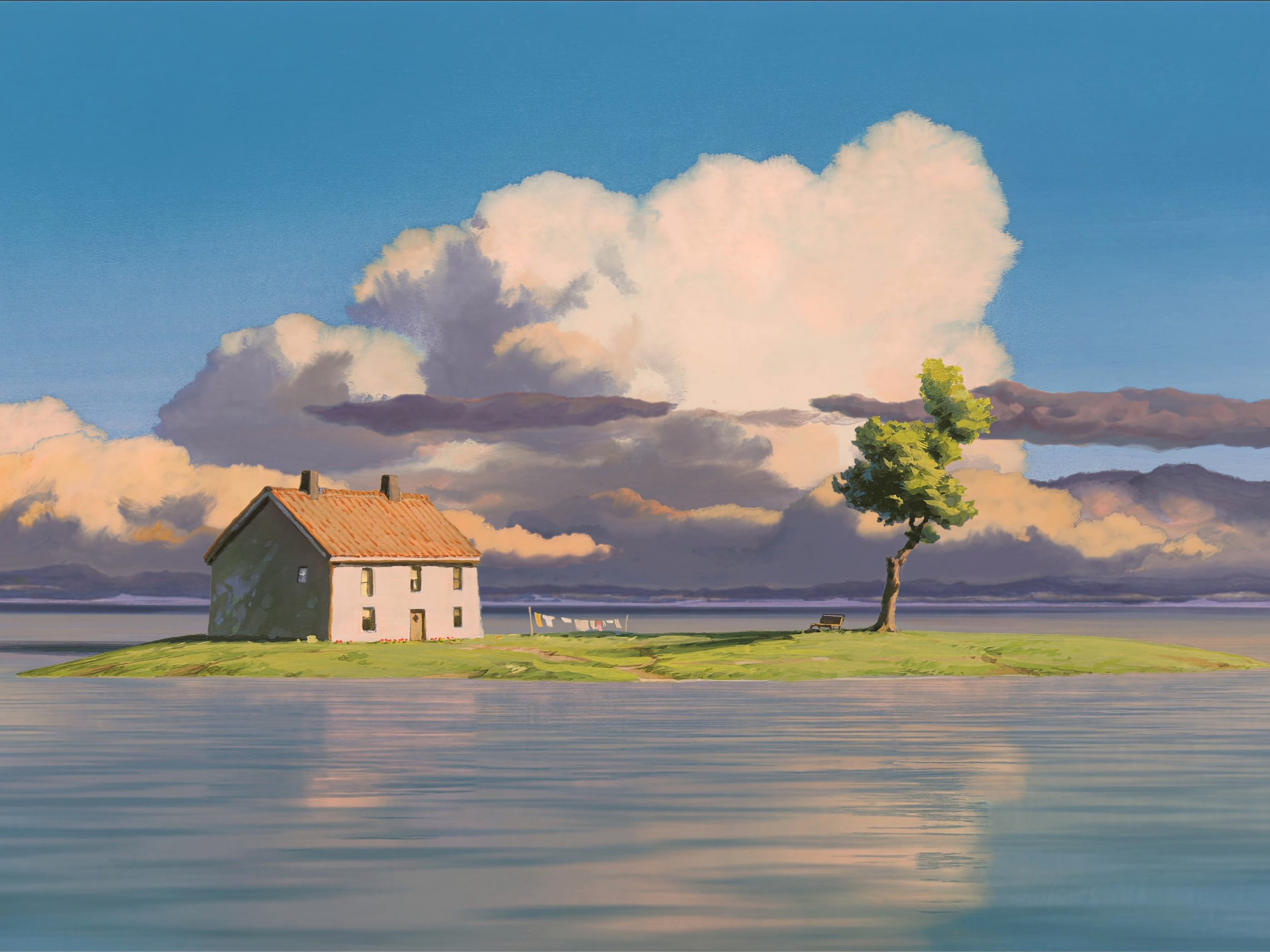 House, Island, Lake, Sky 4K Desktop and Mobile Wallpaper Background with a maximum resolution of 3840x2160 px.