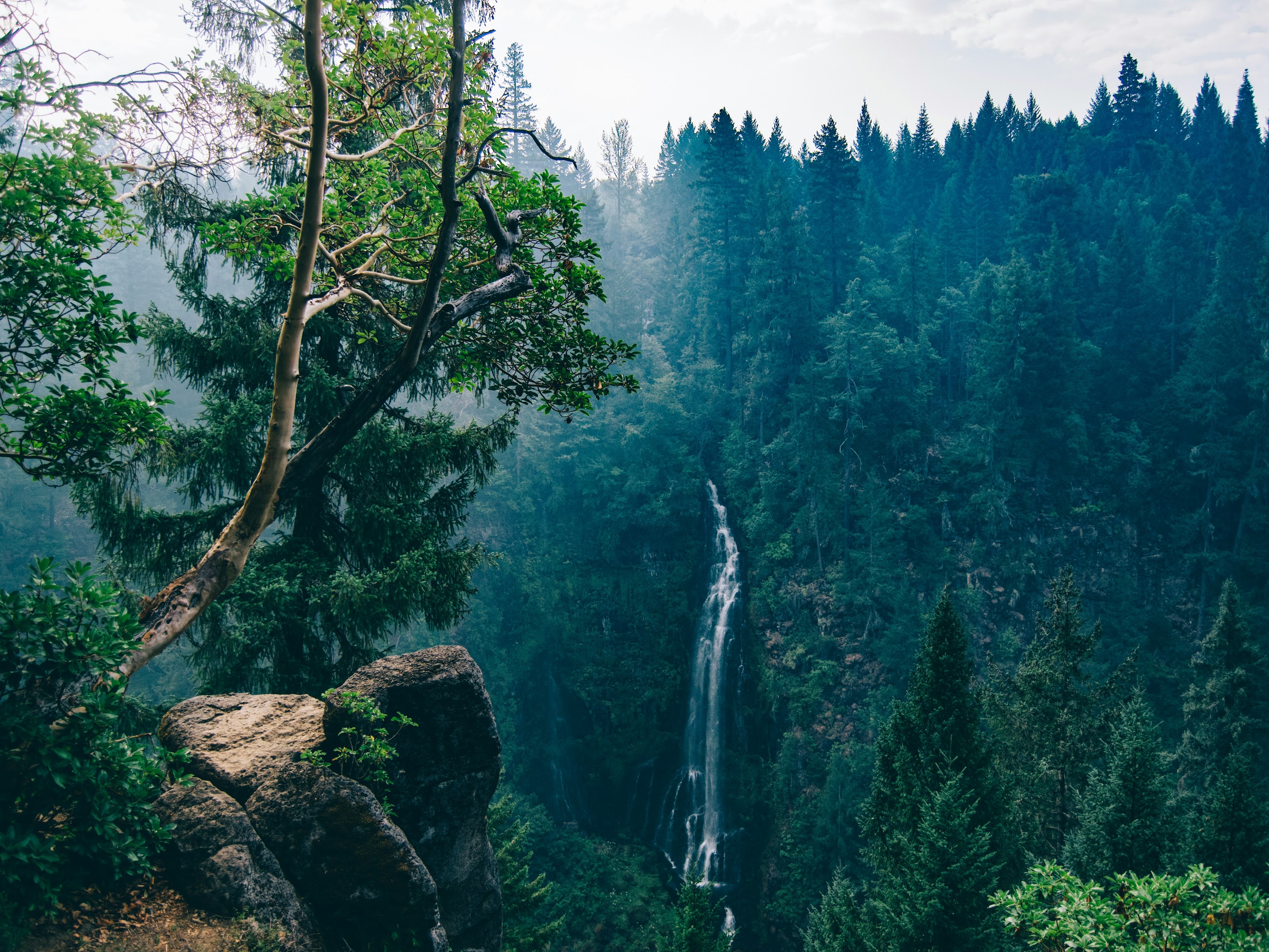 Nature, Waterfall, Forest, Landscape 5K Desktop and Mobile Wallpaper Background with a maximum resolution of 6000x4000 px.