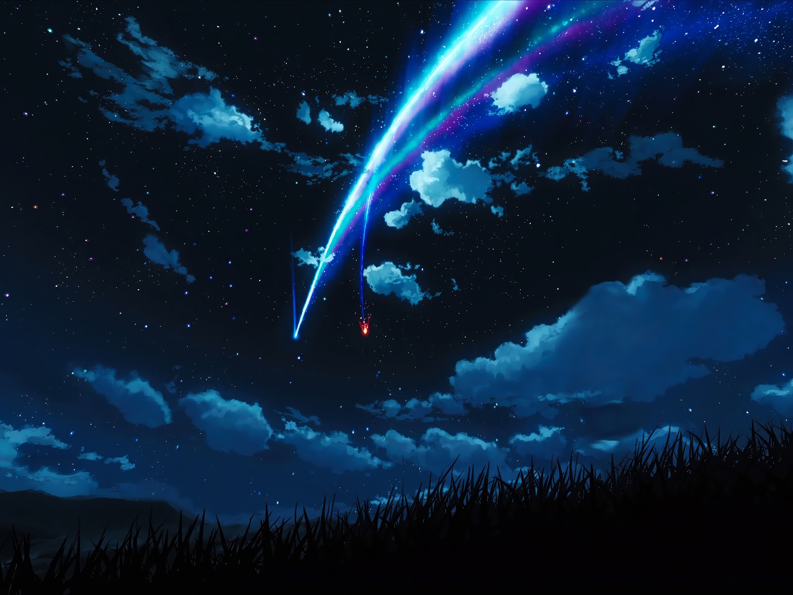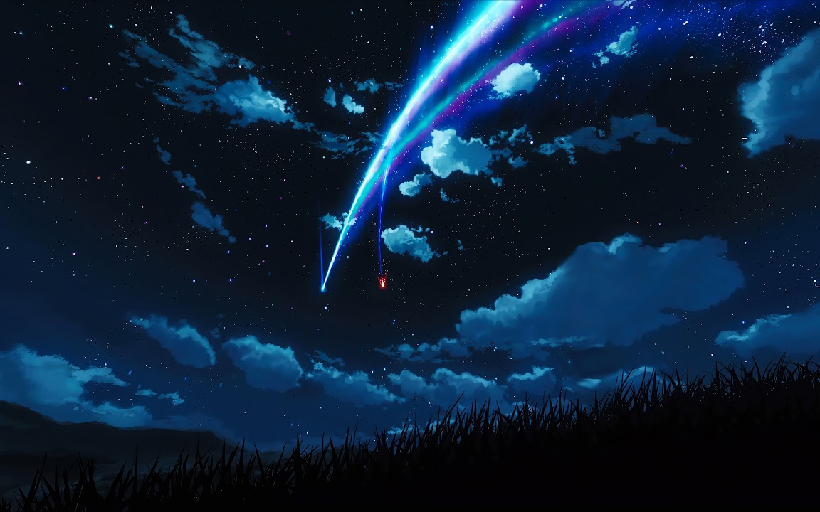 Night Sky, Starry Night, Shooting Star, Anime Background 4K Desktop Wallpaper