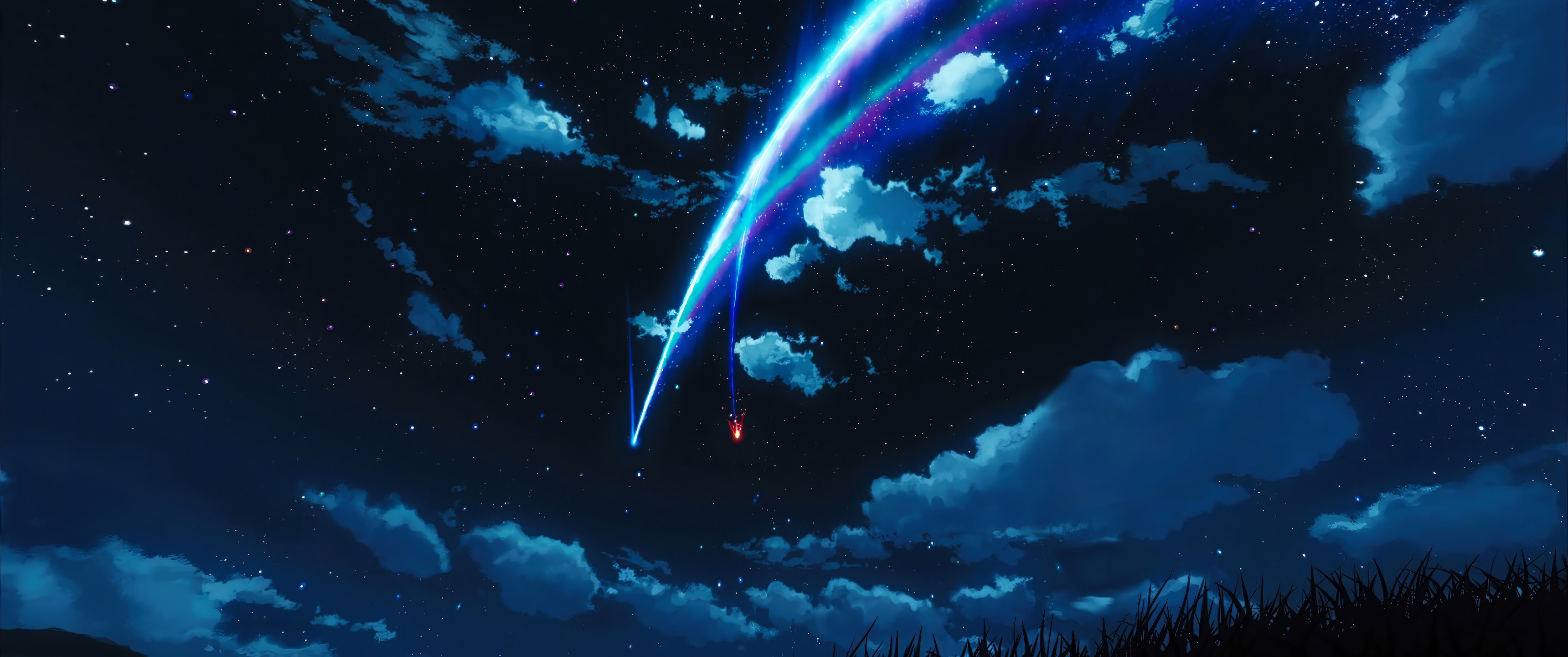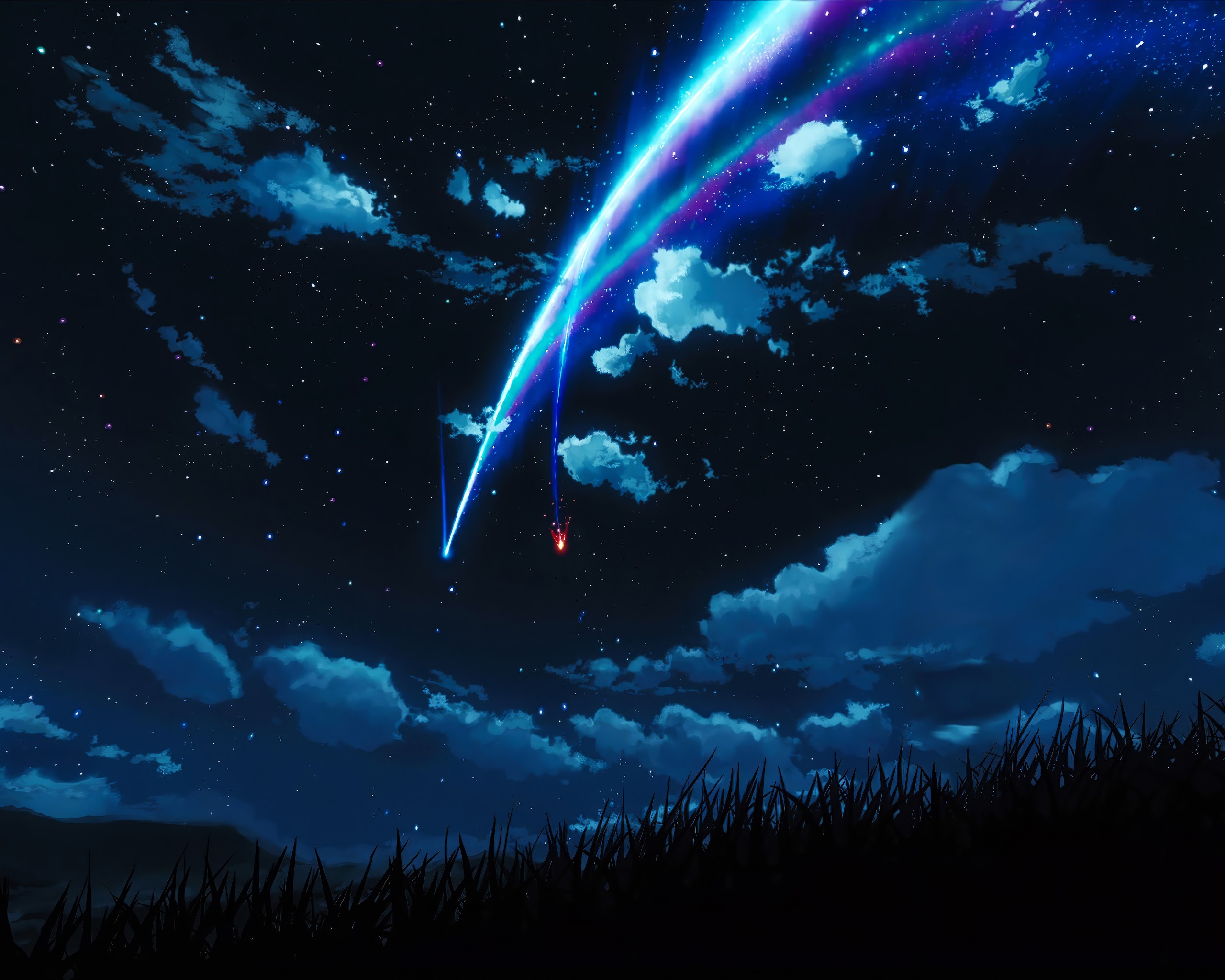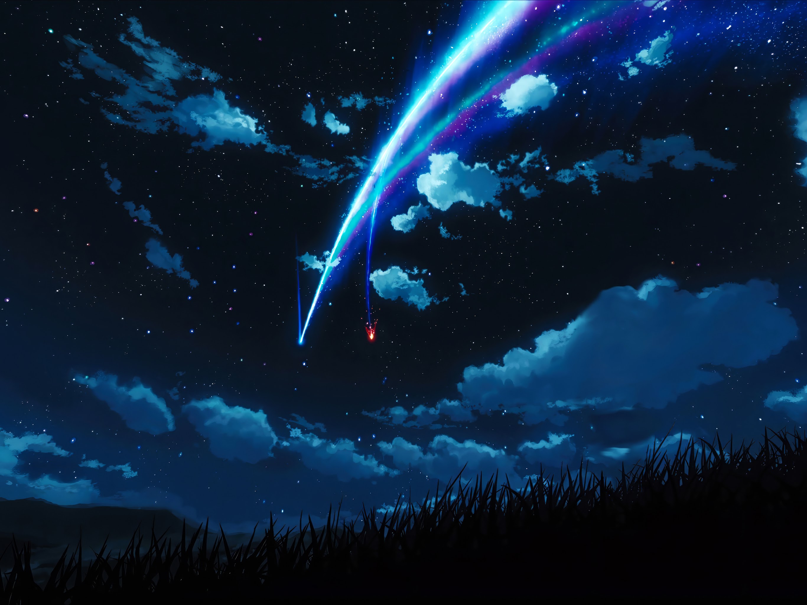 Night Sky, Starry Night, Shooting Star, Anime Background 4K Desktop and Mobile Wallpaper Background with a maximum resolution of 3840x2160 px.