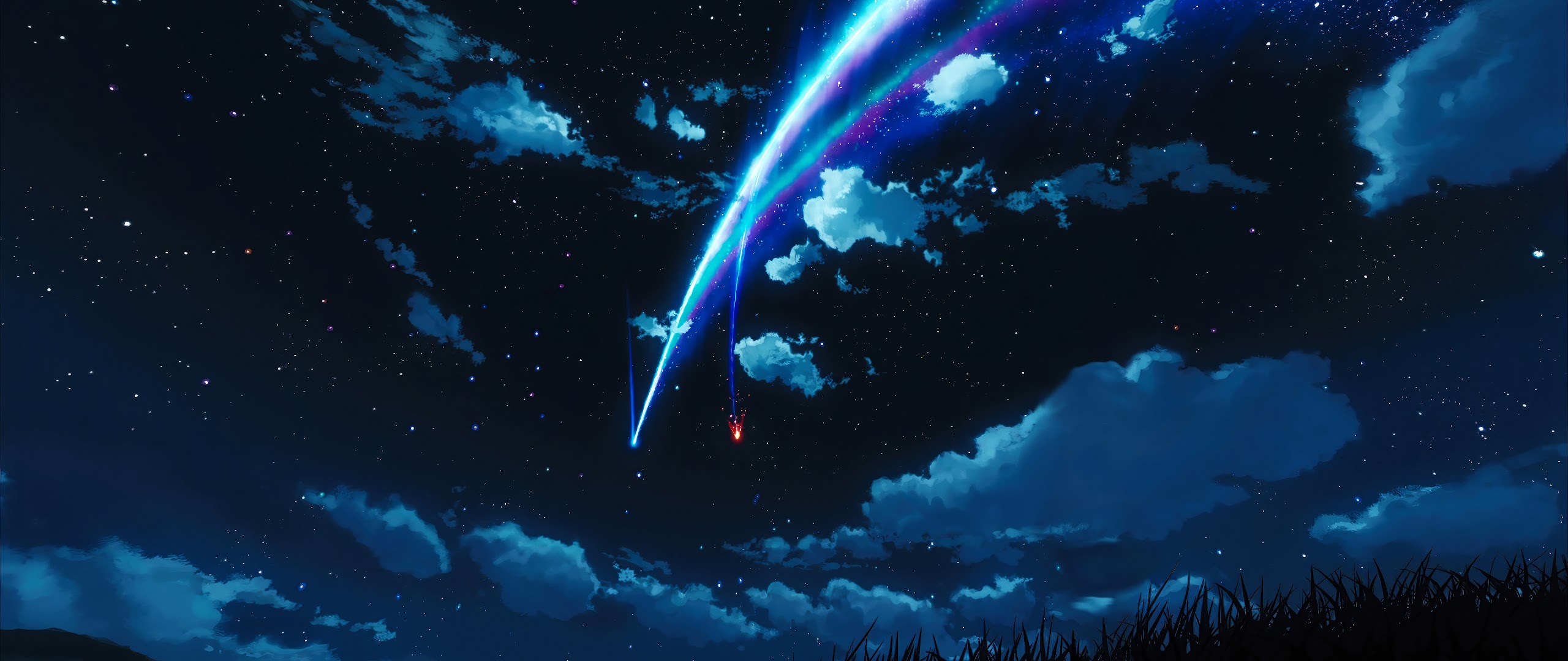 Night Sky, Starry Night, Shooting Star, Anime Background 4K Desktop and Mobile Wallpaper Background with a maximum resolution of 3840x2160 px.