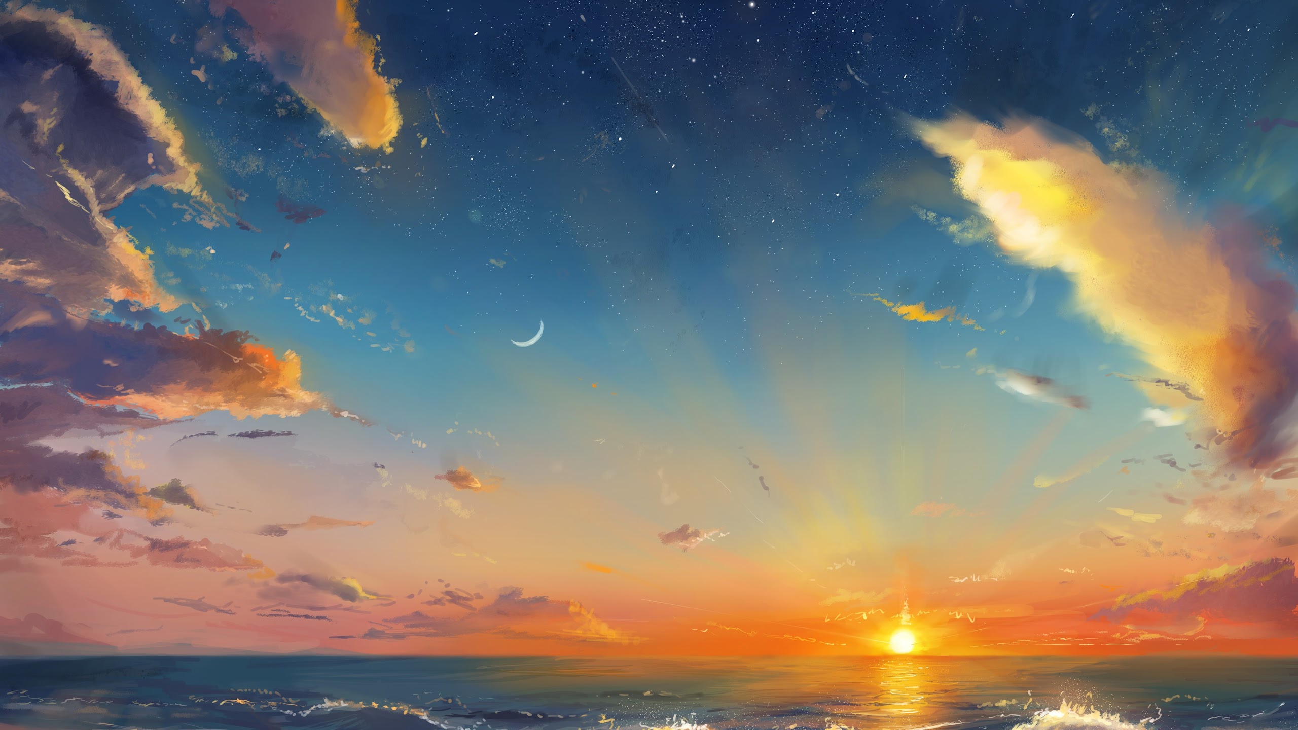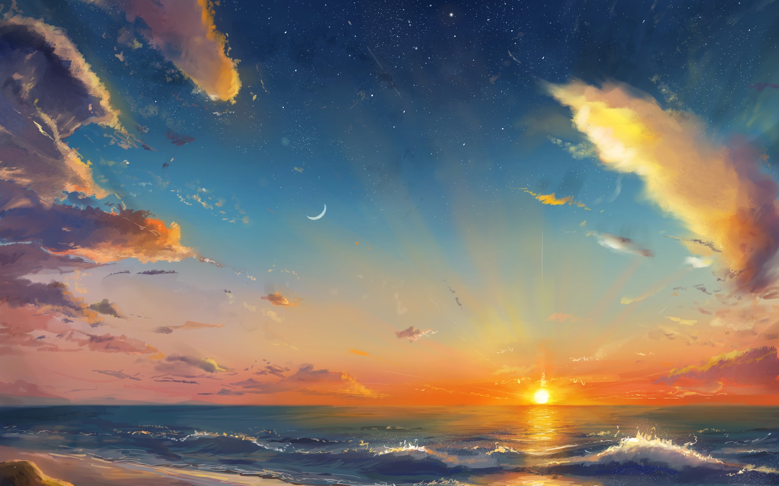 Ocean Sunset, Beach Sunset, Seascape, Golden Hour, Nature Photography, 4K Desktop and Mobile Wallpaper Background with a maximum resolution of 4093x2894 px.