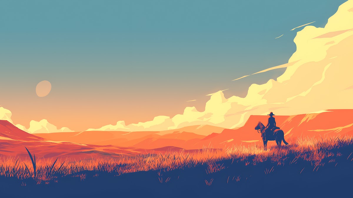 Sunset, Desert, Landscape, Cowboy 4K Desktop Wallpaper