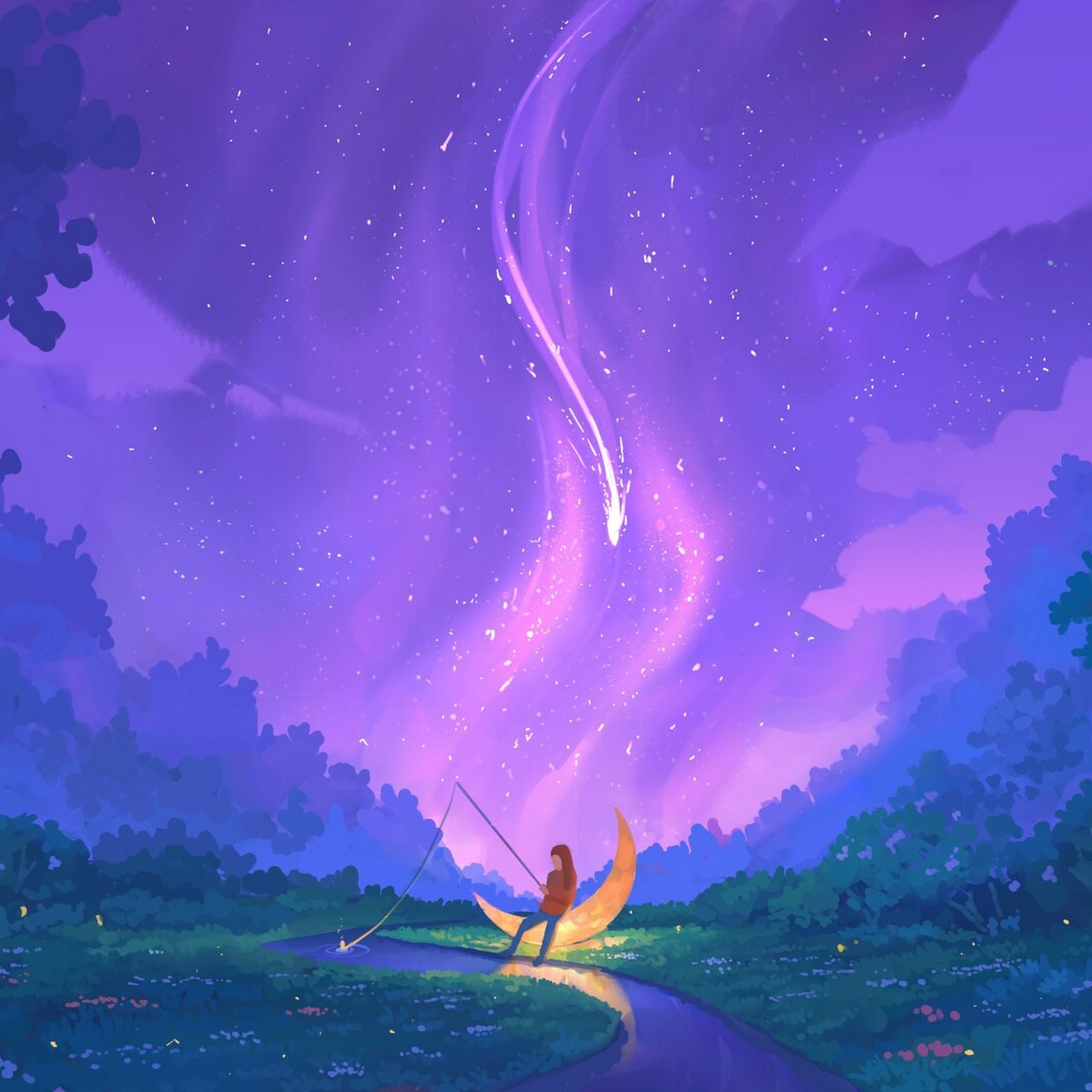 Fantasy Art, Digital Art, Magical Forest, Moonlit Night Full HD Desktop and Mobile Wallpaper Background with a maximum resolution of 1920x1080 px.