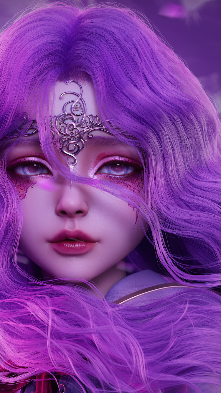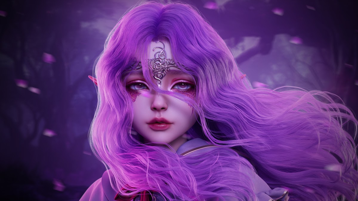 Fantasy, Elf, Digital Art, Purple Hair 4K Desktop Wallpaper