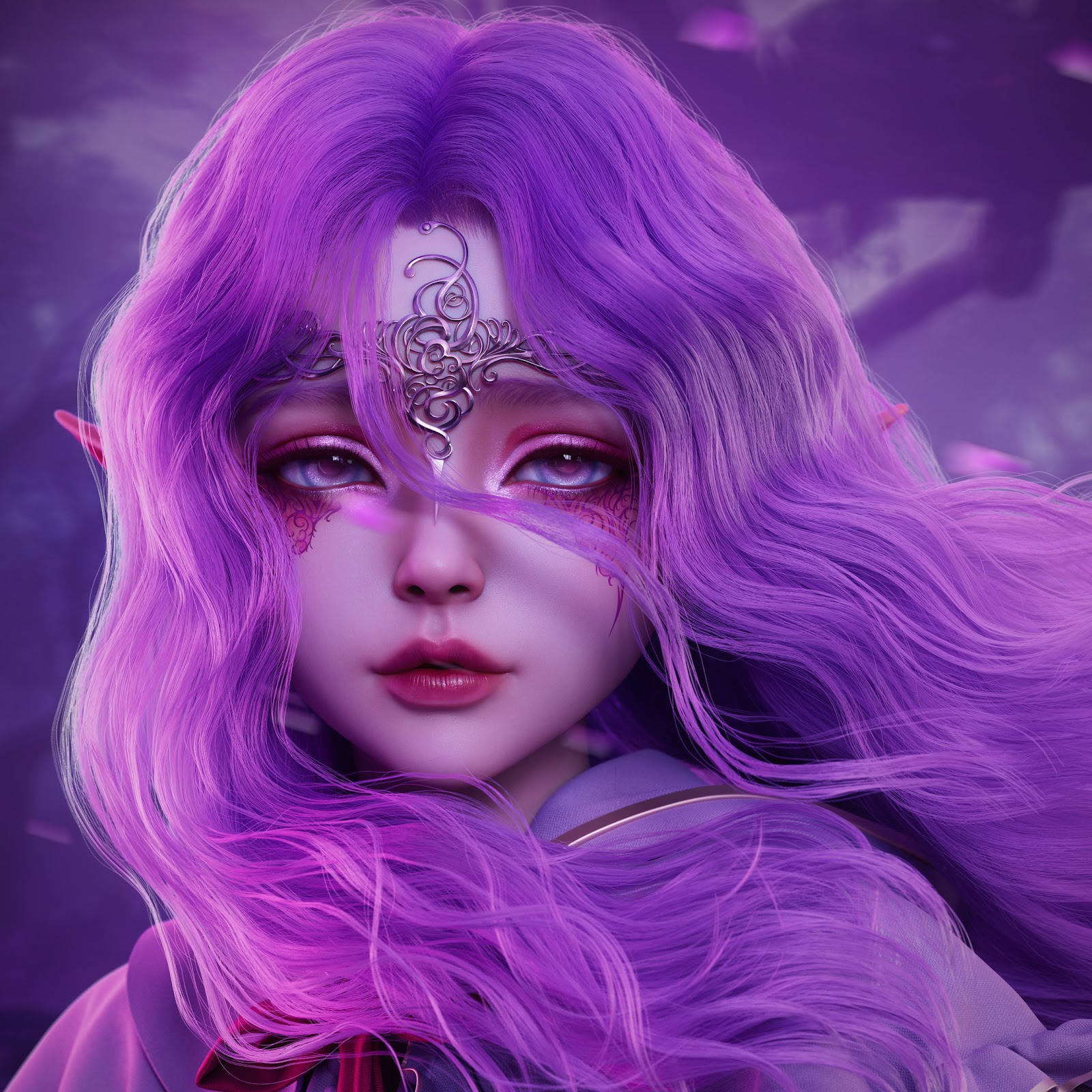 Fantasy, Elf, Digital Art, Purple Hair 4K Desktop and Mobile Wallpaper Background with a maximum resolution of 3840x2163 px.