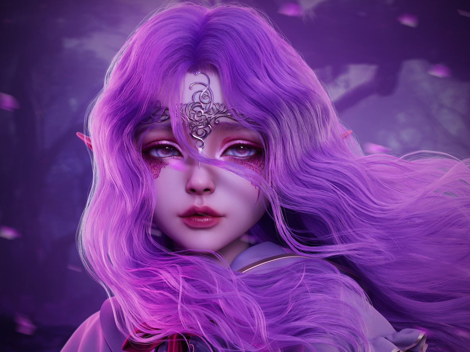 Fantasy, Elf, Digital Art, Purple Hair 4K Desktop Wallpaper