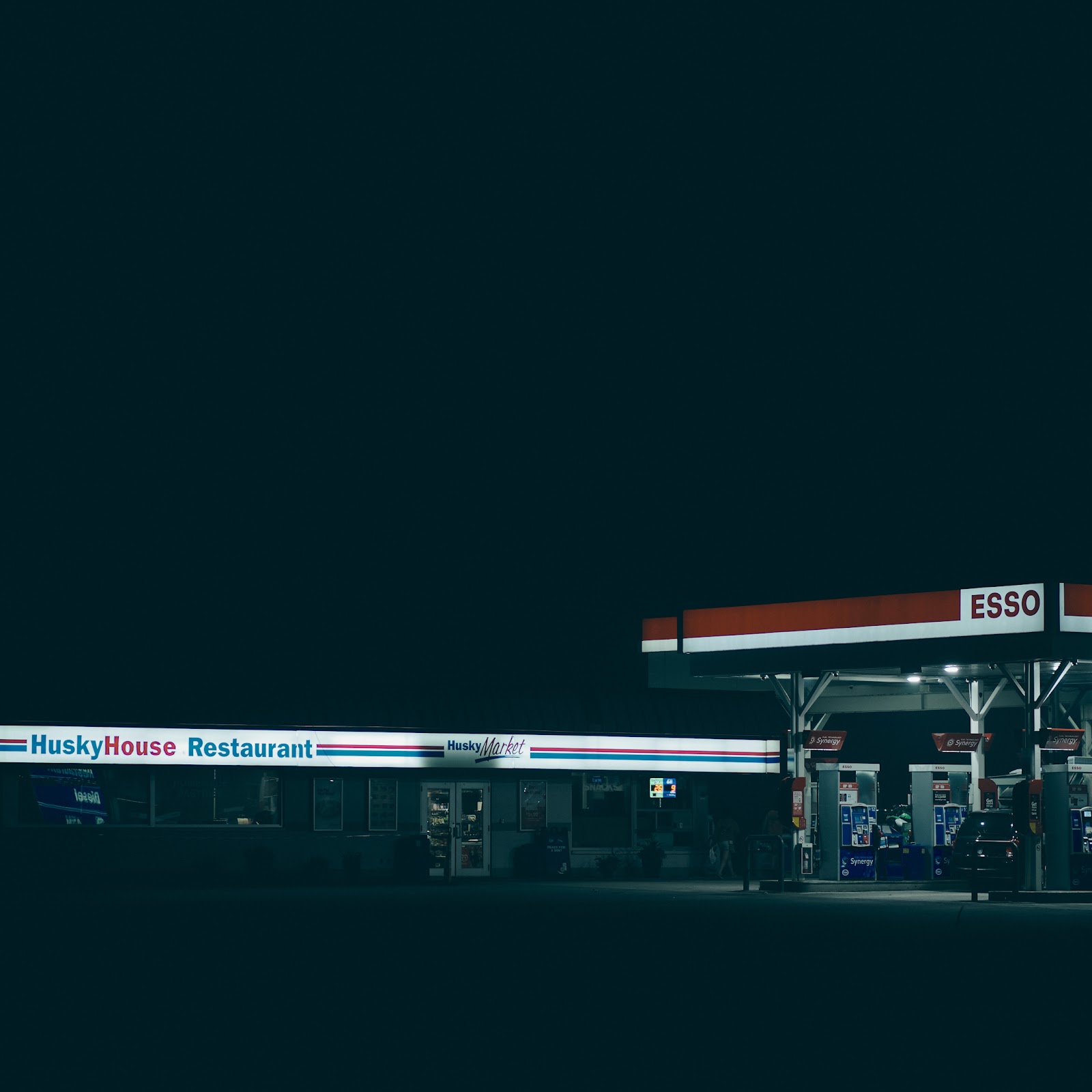 Esso, Gas Station, Restaurant, Night 4K Desktop and Mobile Wallpaper Background with a maximum resolution of 3840x2160 px.