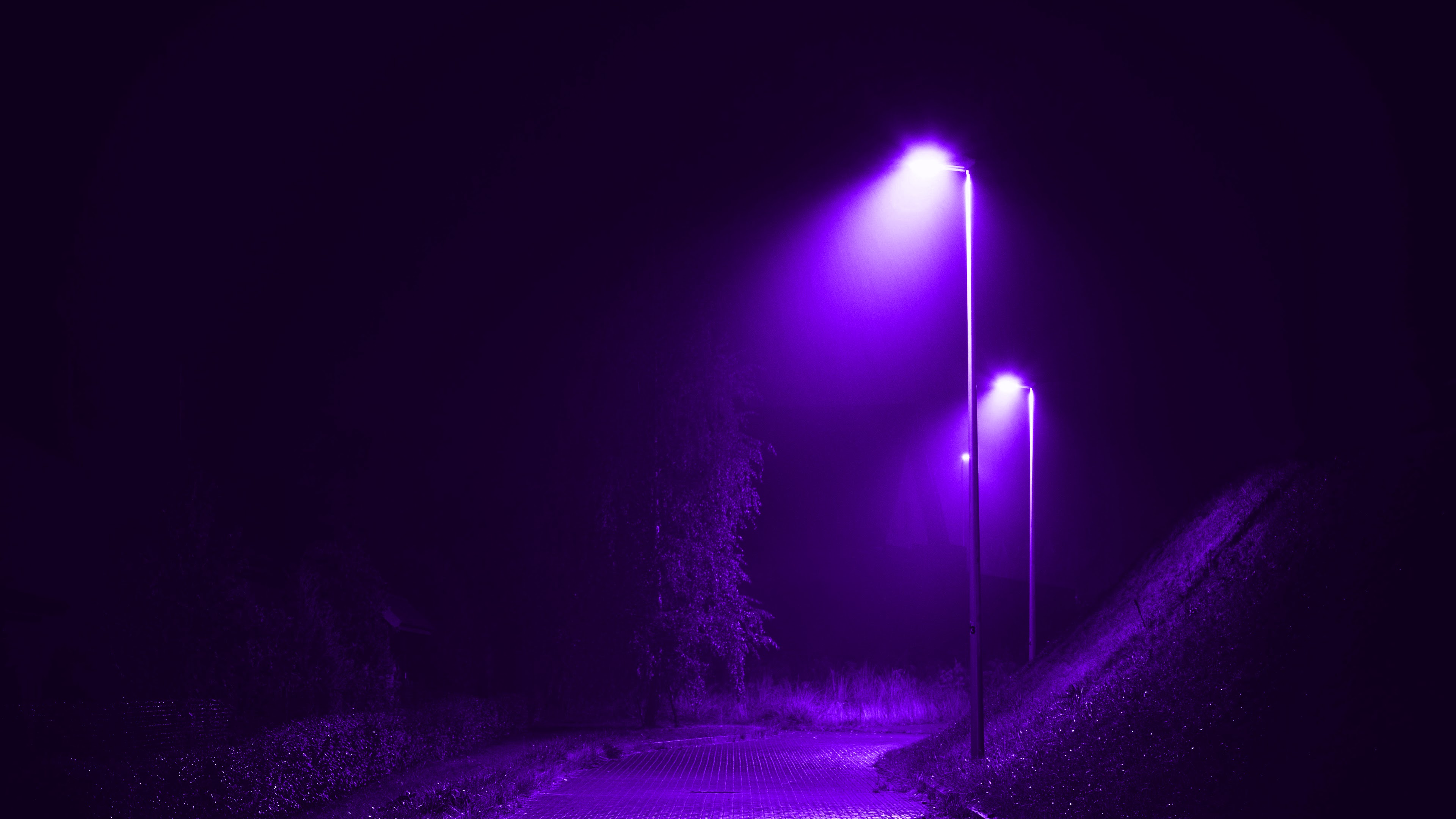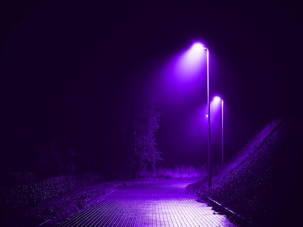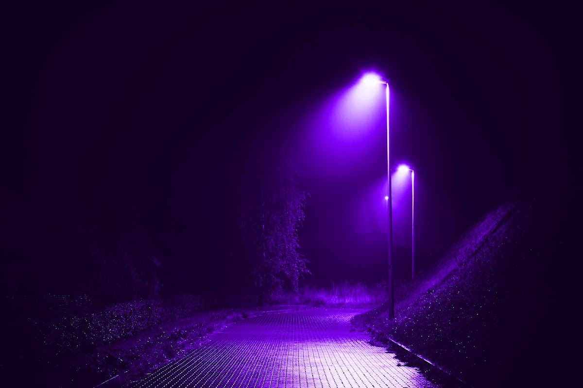 Night, Street, Purple, Foggy 5K Desktop and Mobile Wallpaper Background with a maximum resolution of 5310x3540 px.