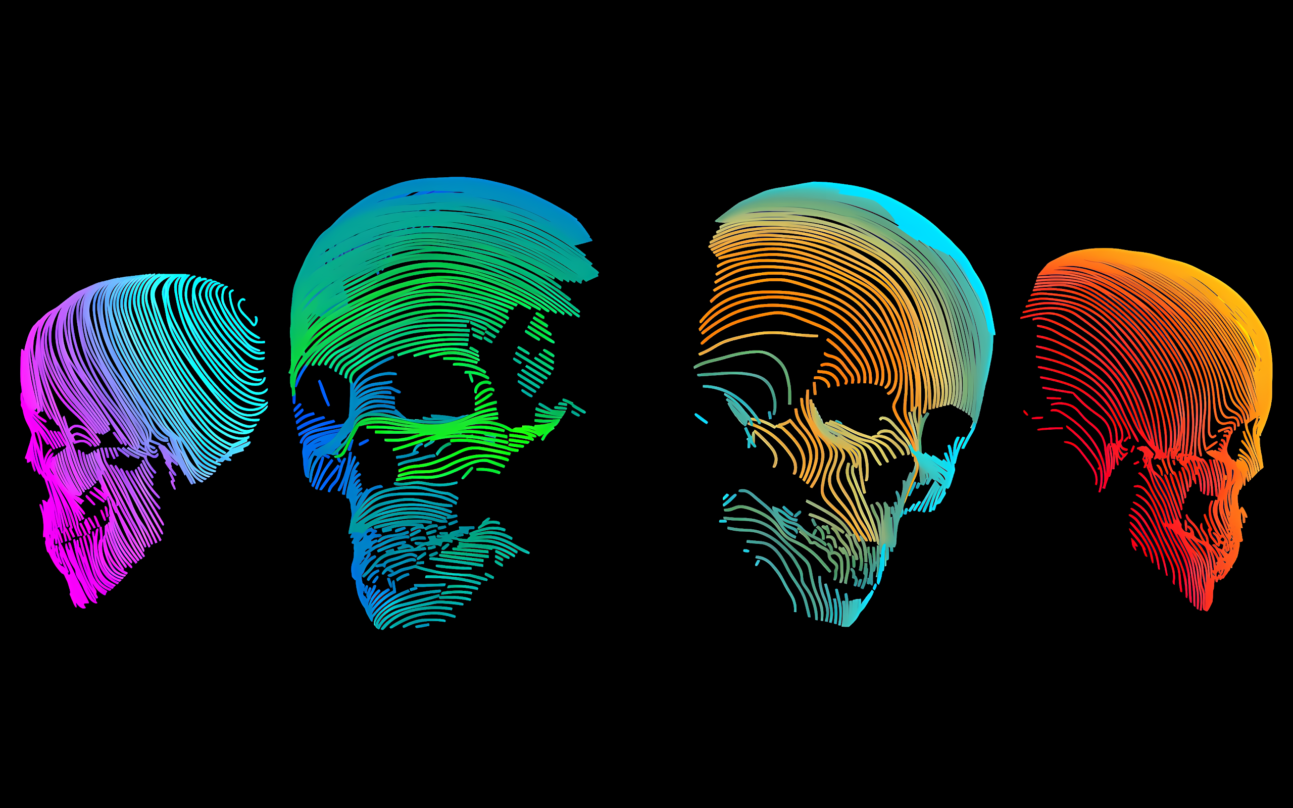 Skull, Abstract, Neon, Digital Art 5K Desktop Wallpaper