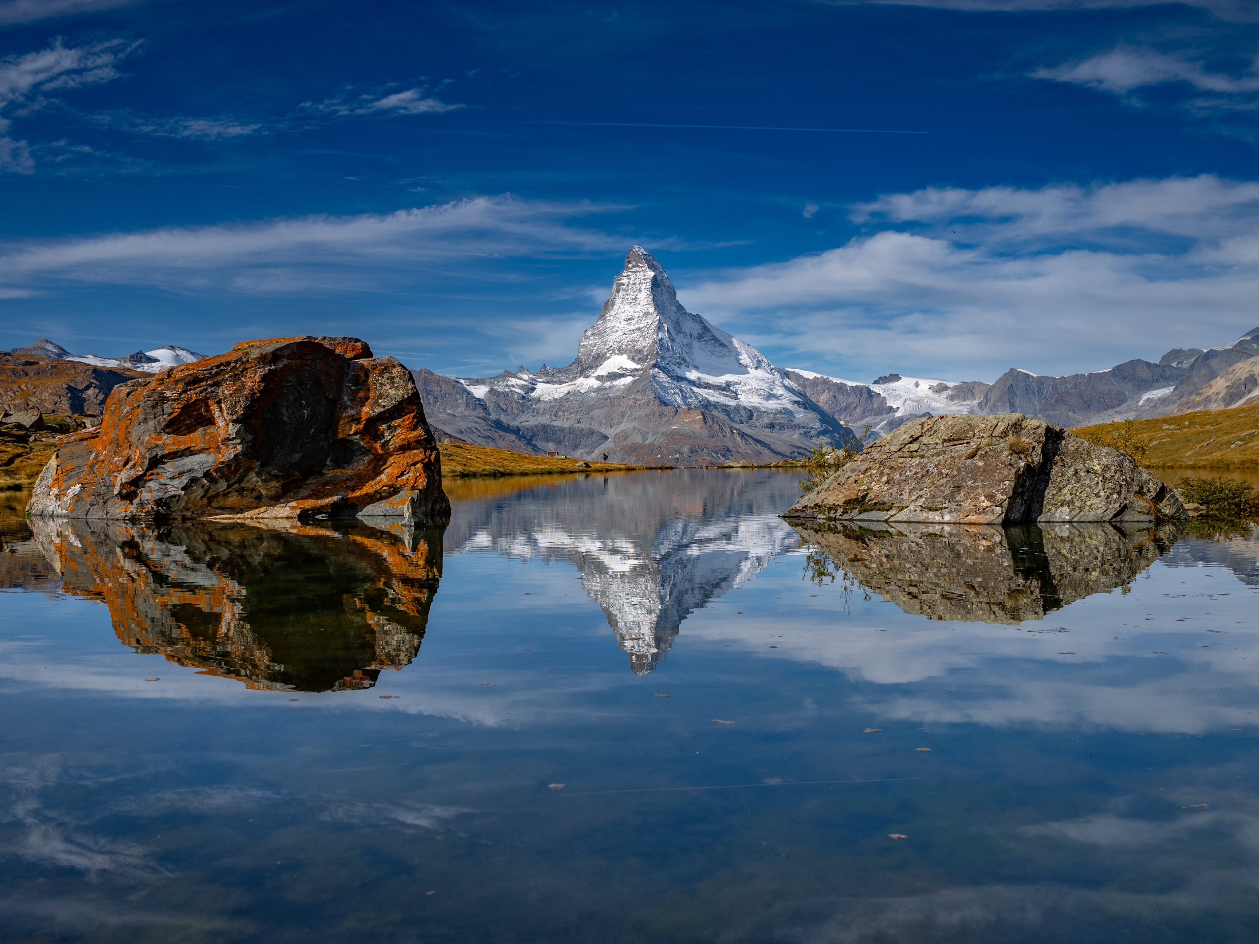 Switzerland, Matterhorn, Mountain Reflection, Alpine Lake 4K Desktop and Mobile Wallpaper Background with a maximum resolution of 3840x2160 px.
