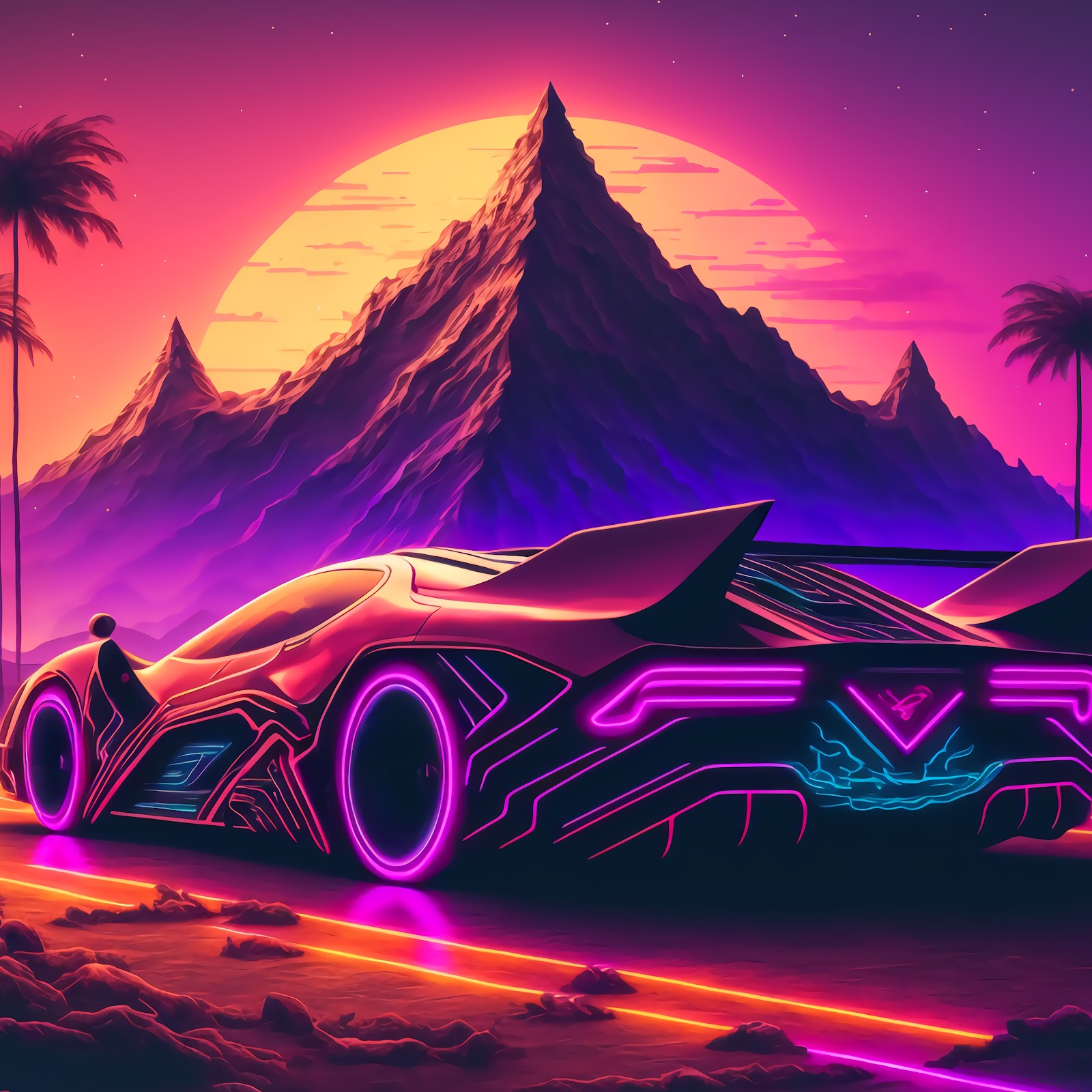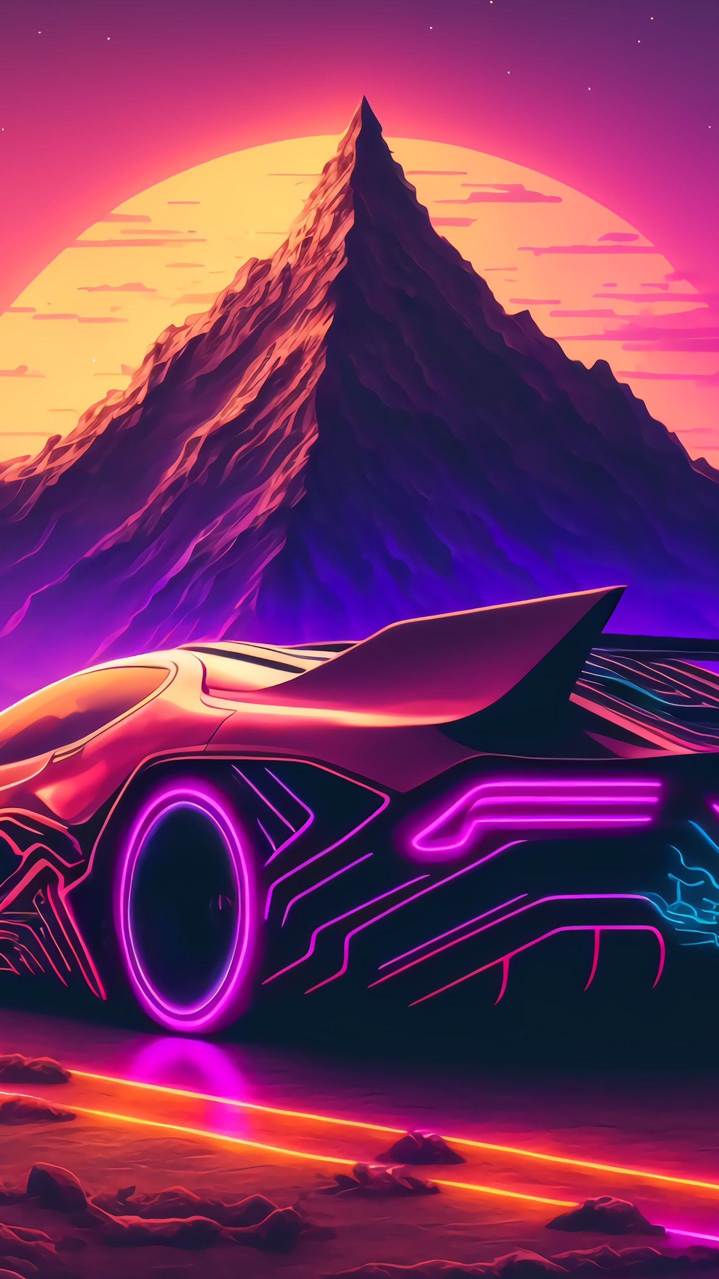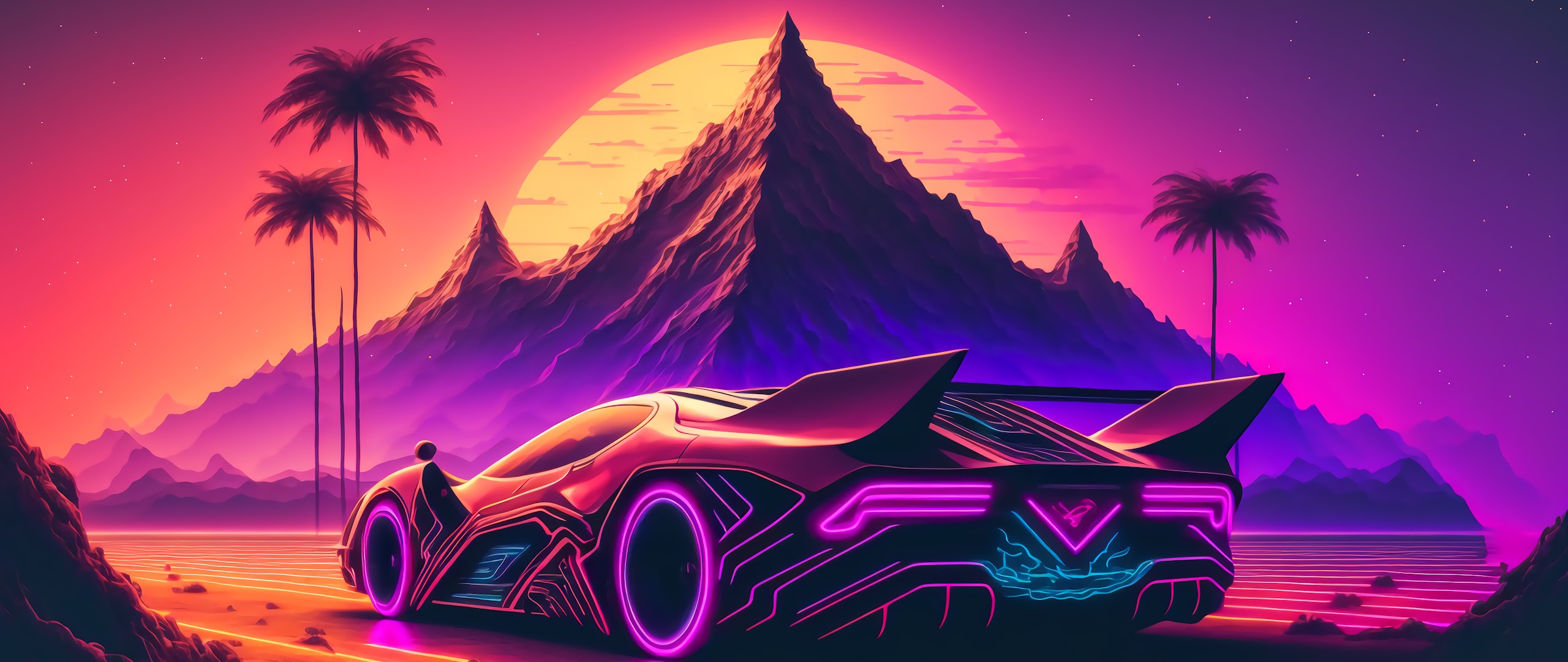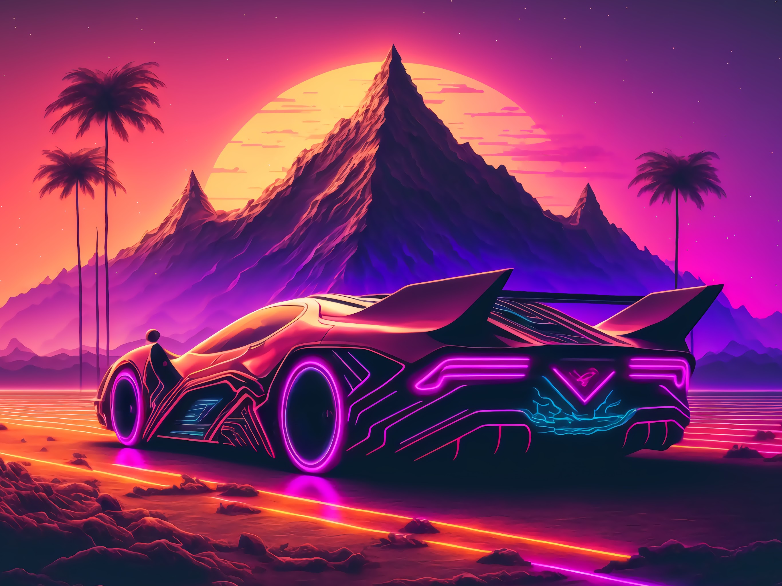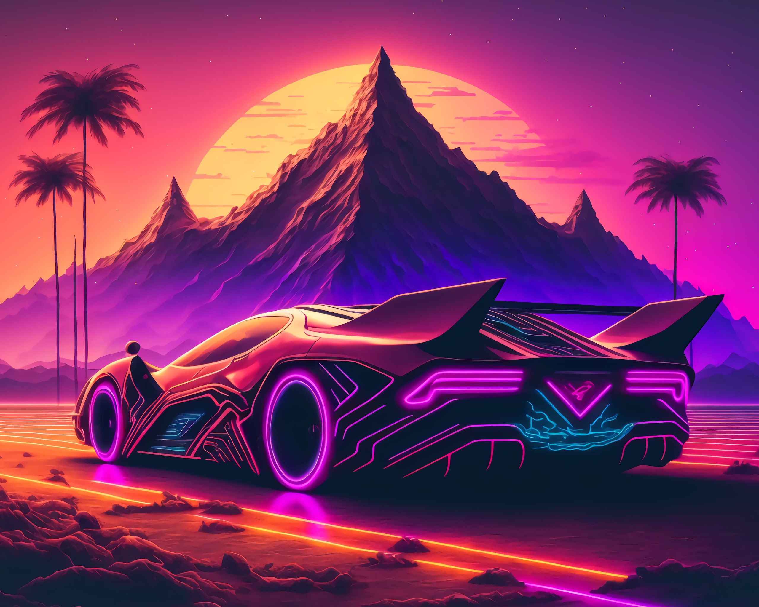 Synthwave, Retro, Cyberpunk, Outrun 5K Desktop and Mobile Wallpaper Background with a maximum resolution of 6058x3408 px.