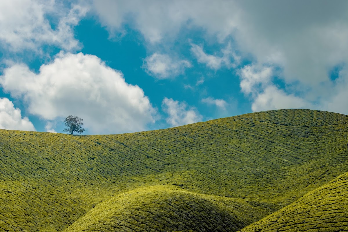 Tea Plantation, Green Hills, Landscape, Nature Photography 5K Desktop and Mobile Wallpaper Background with a maximum resolution of 6960x4640 px.