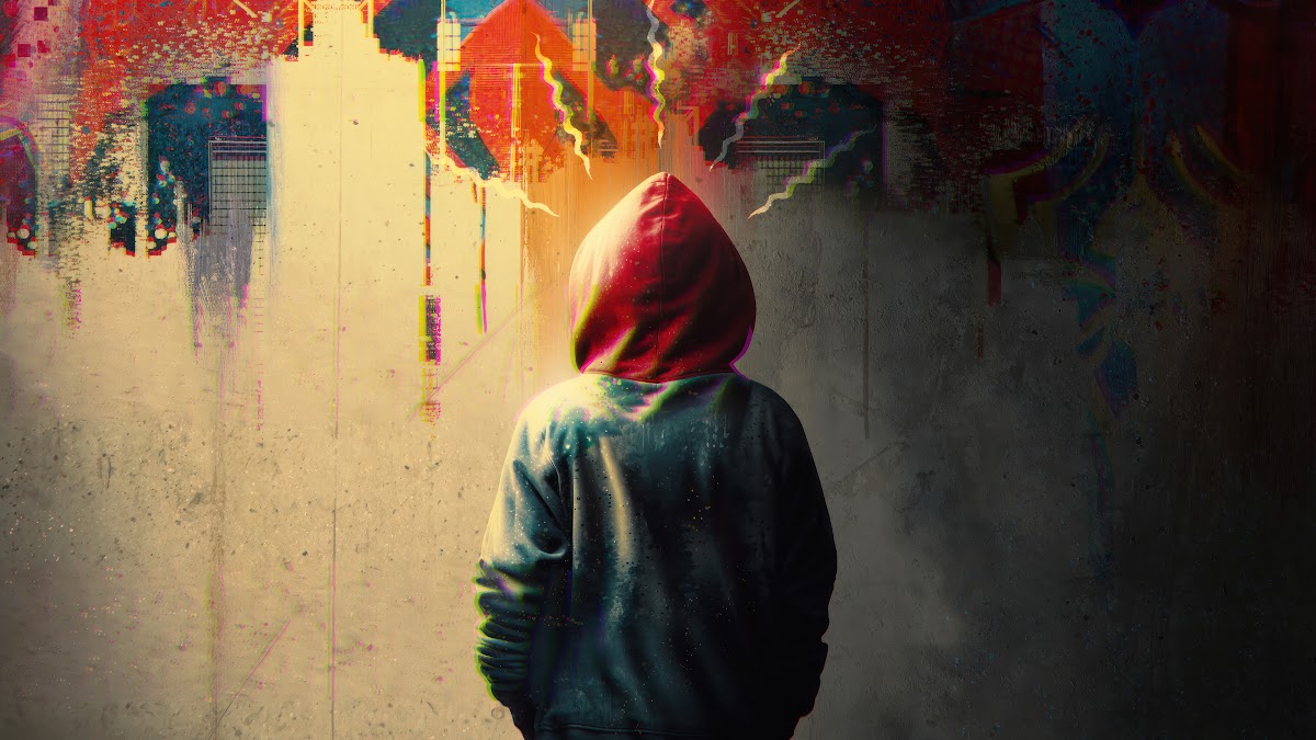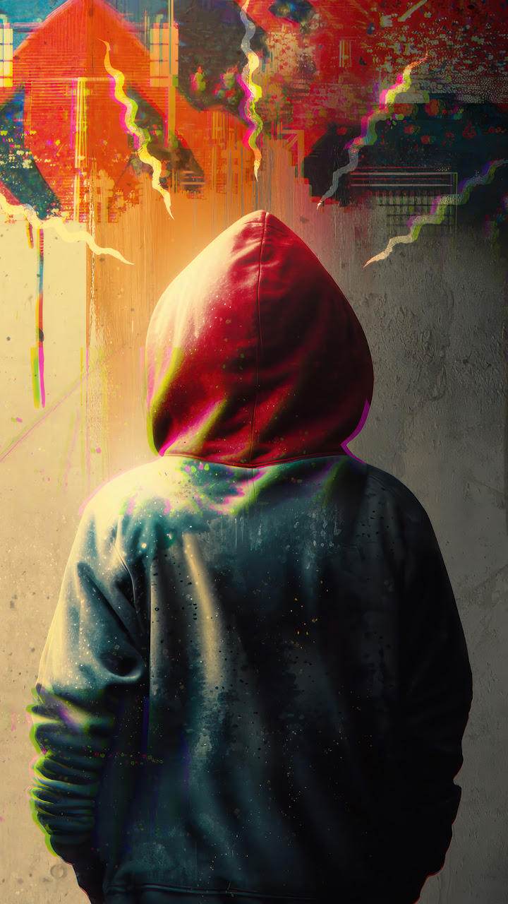 Hoodie, Glitch, Surreal, Urban, Graffiti 4K Desktop Wallpaper