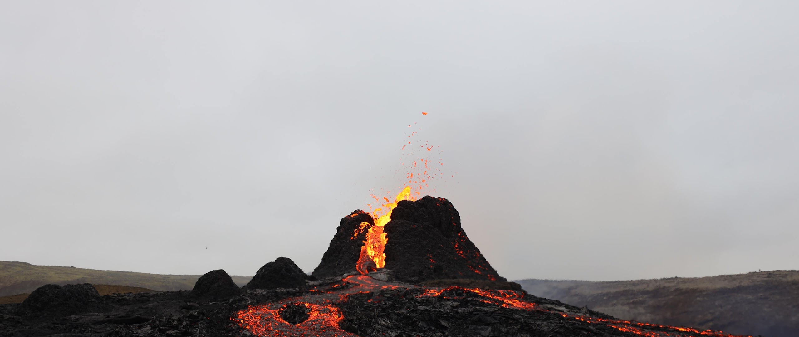 Volcano, Lava, Eruption, Iceland 4K Desktop and Mobile Wallpaper Background with a maximum resolution of 3840x2160 px.