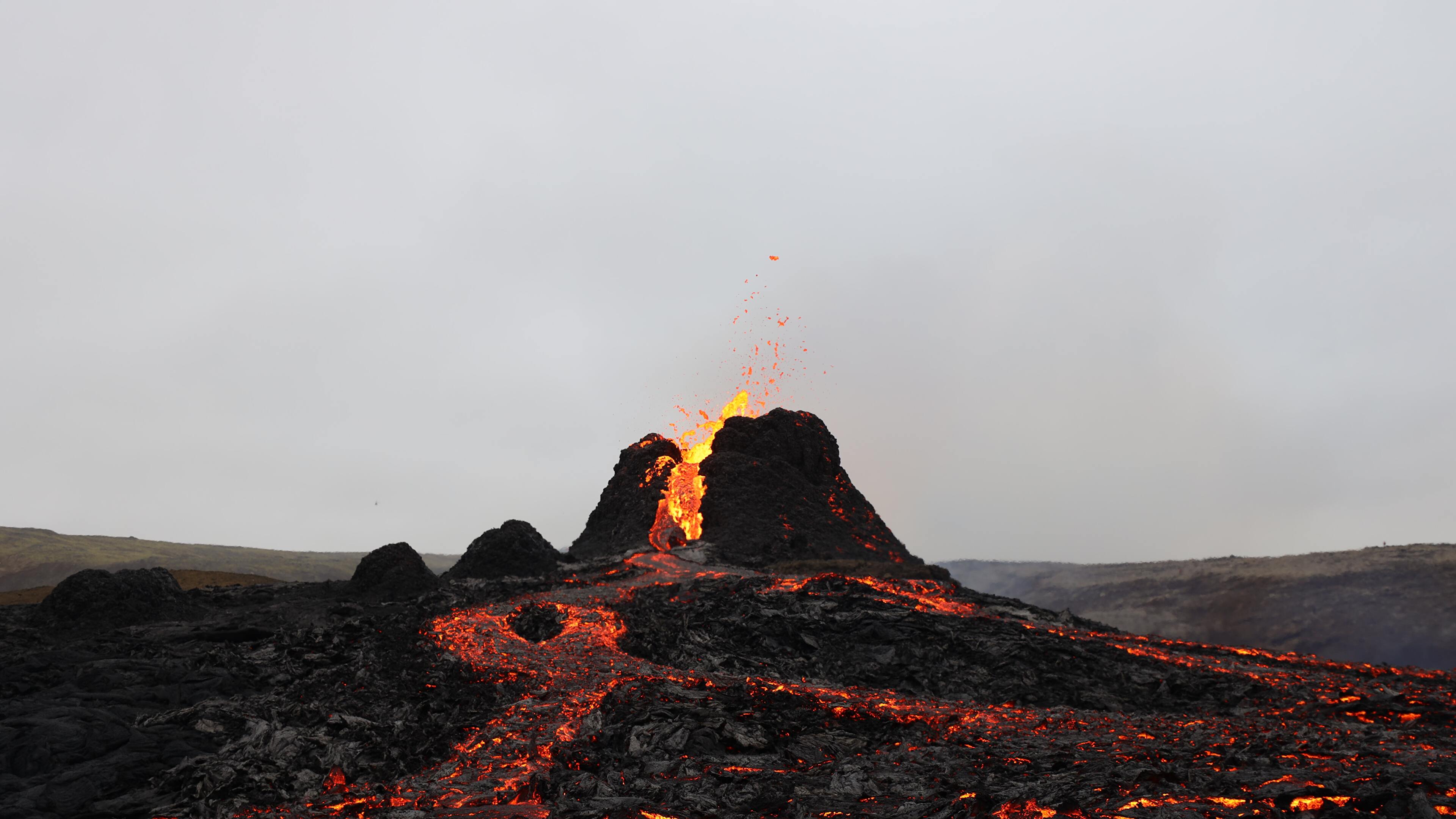 Volcano, Lava, Eruption, Iceland 4K Desktop and Mobile Wallpaper Background with a maximum resolution of 3840x2160 px.
