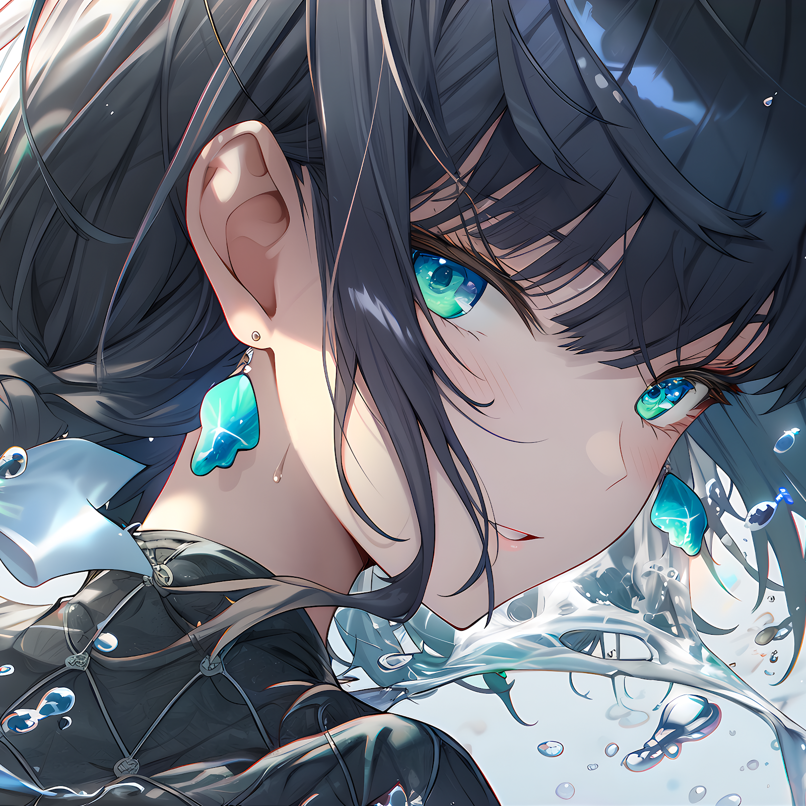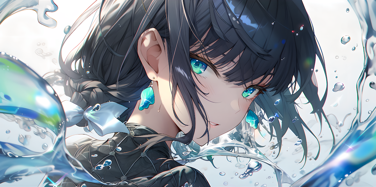 Anime Girl, Blue Eyes, Water, Digital Art 4K Desktop and Mobile Wallpaper Background with a maximum resolution of 4798x2392 px.