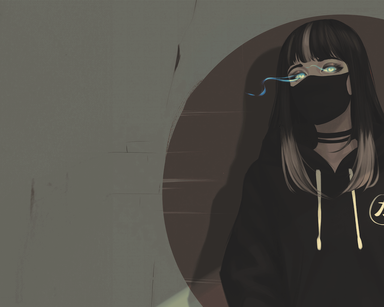 Anime Girl, Katana, Japanese, Digital Art 2K Desktop and Mobile Wallpaper Background with a maximum resolution of 3440x1440 px.