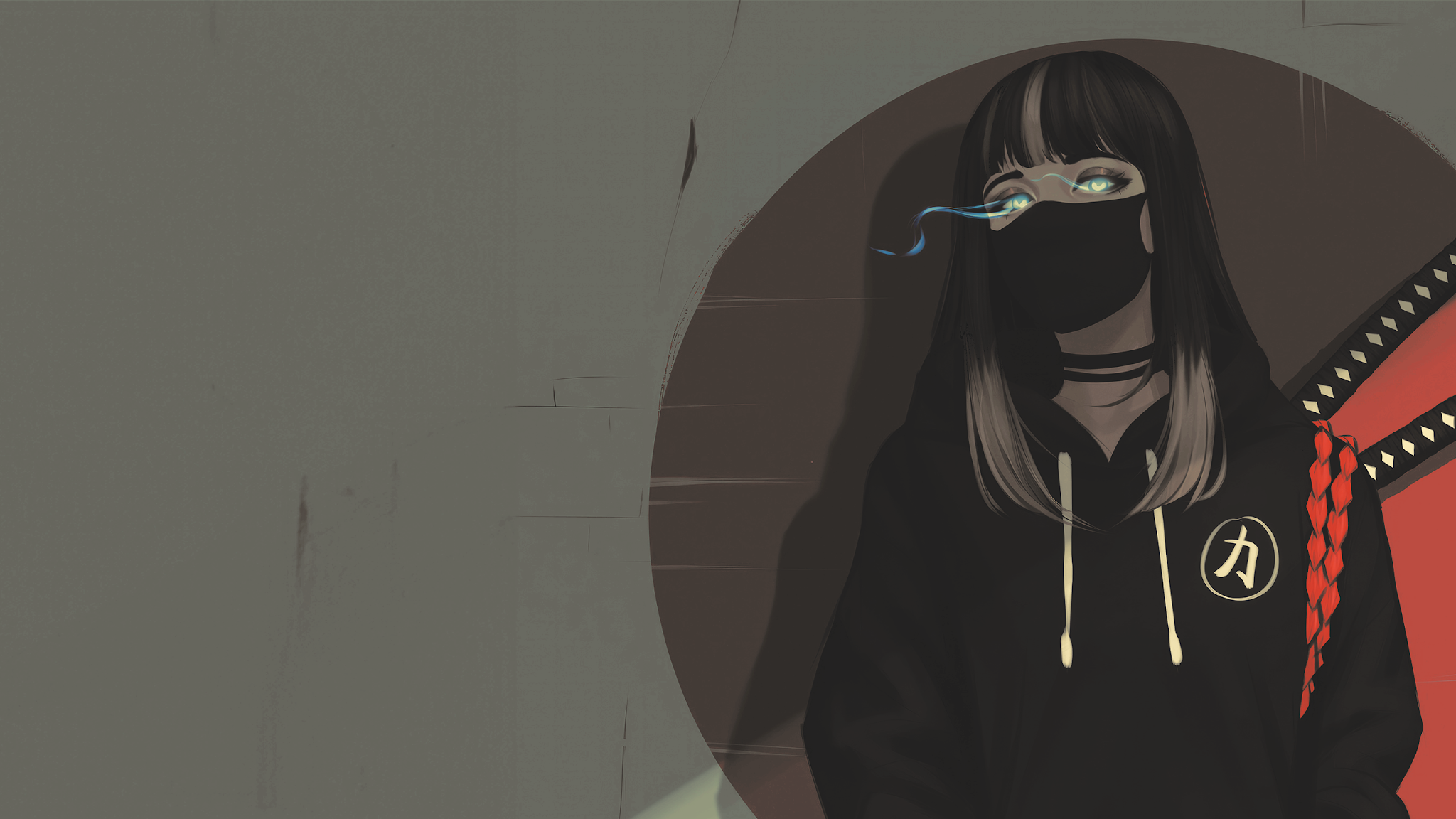 Anime Girl, Katana, Japanese, Digital Art 2K Desktop and Mobile Wallpaper Background with a maximum resolution of 3440x1440 px.
