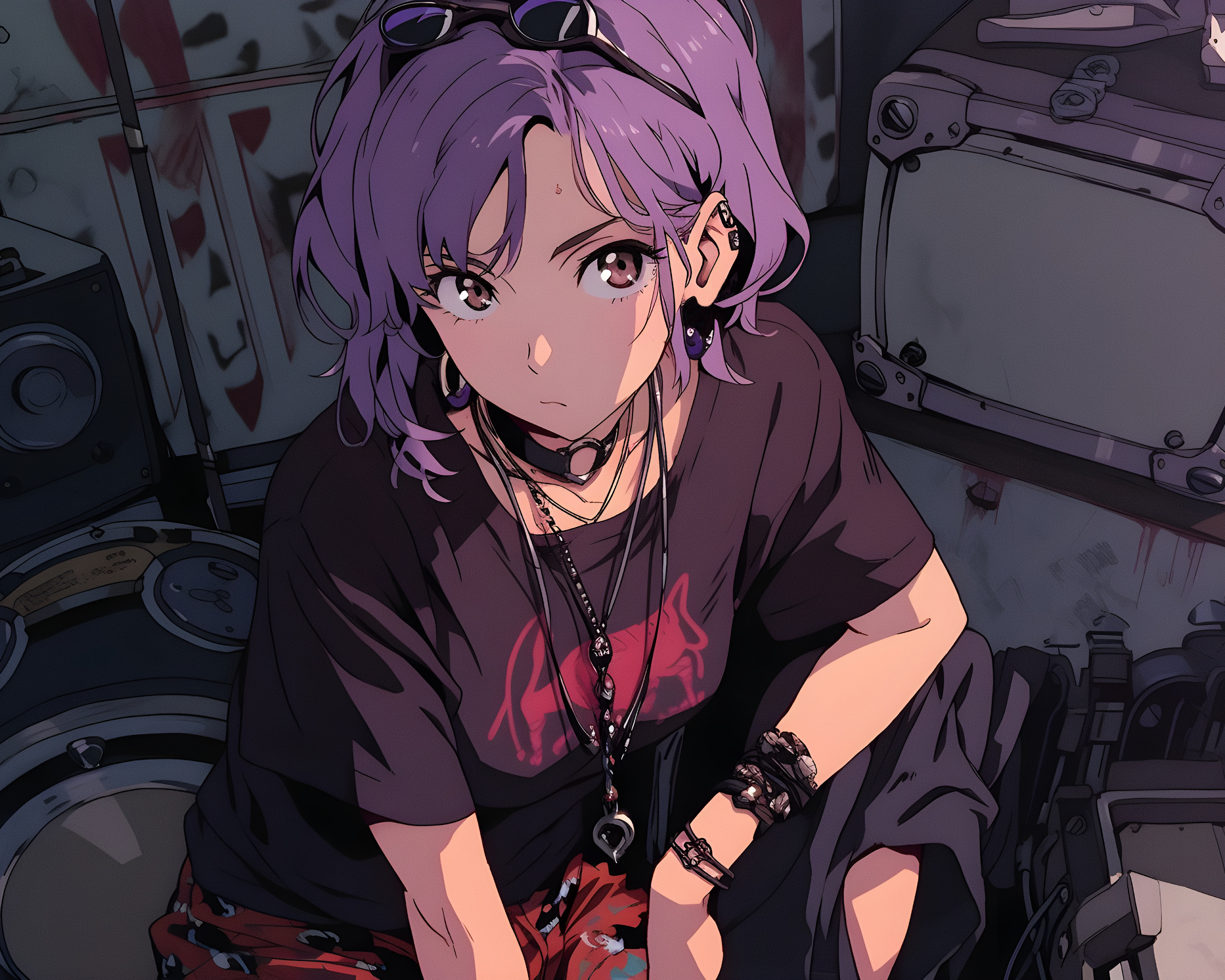Anime Girl, Purple Hair, Digital Art, Illustration Art 4K Desktop and Mobile Wallpaper Background with a maximum resolution of 3840x2560 px.
