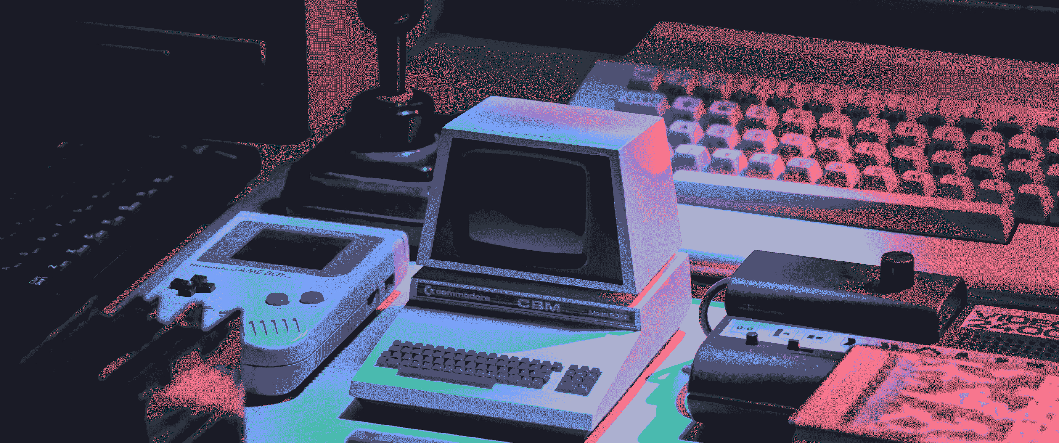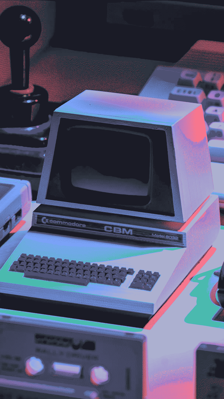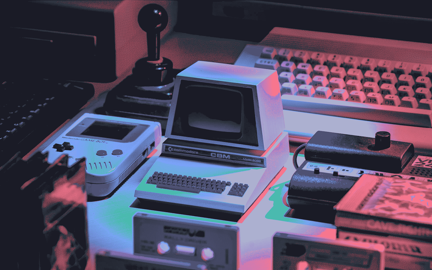 Retro Gaming, Vintage Computer, 80s Technology, Video Game Console. 4K Desktop and Mobile Wallpaper Background with a maximum resolution of 3840x2160 px.